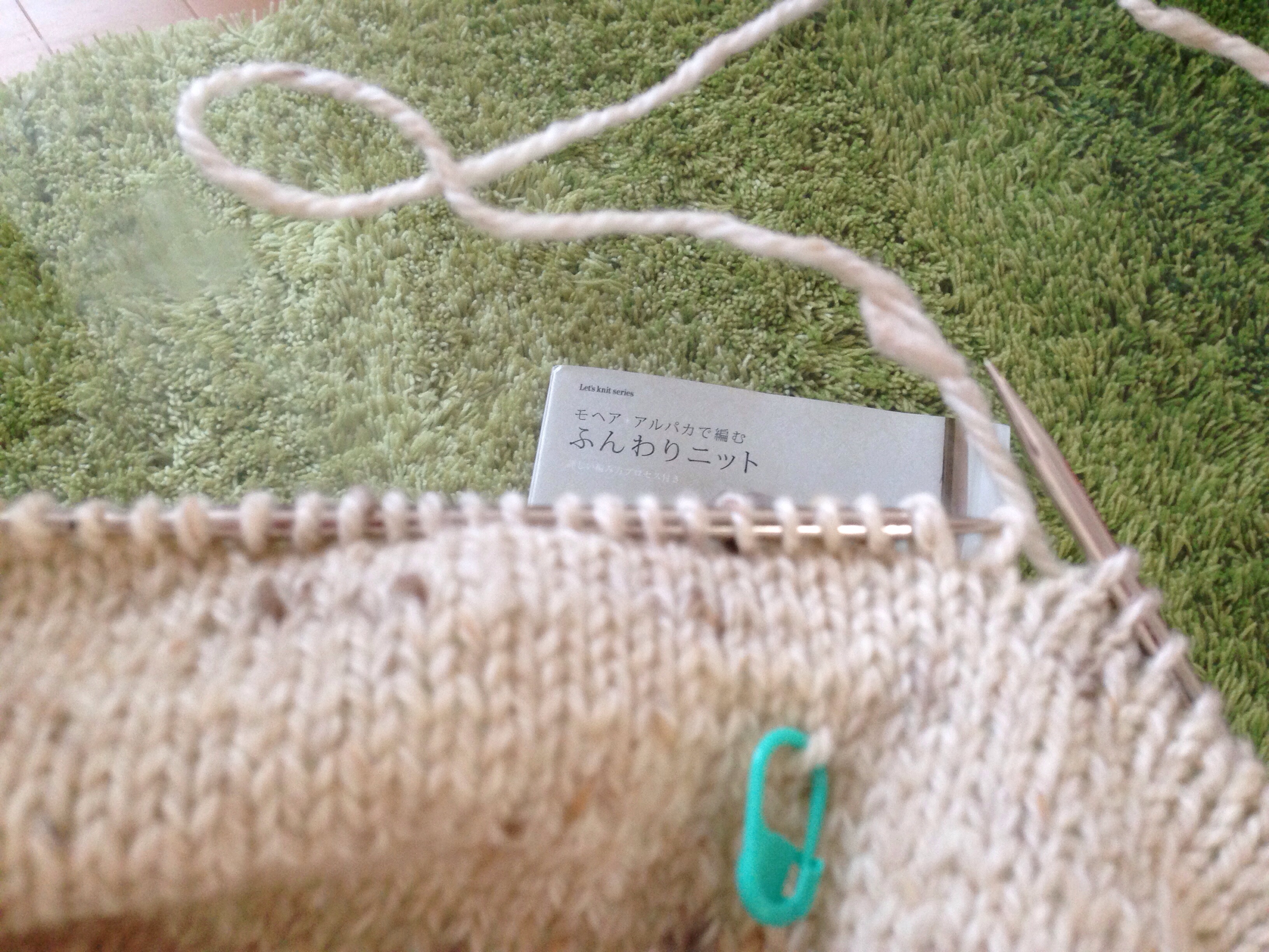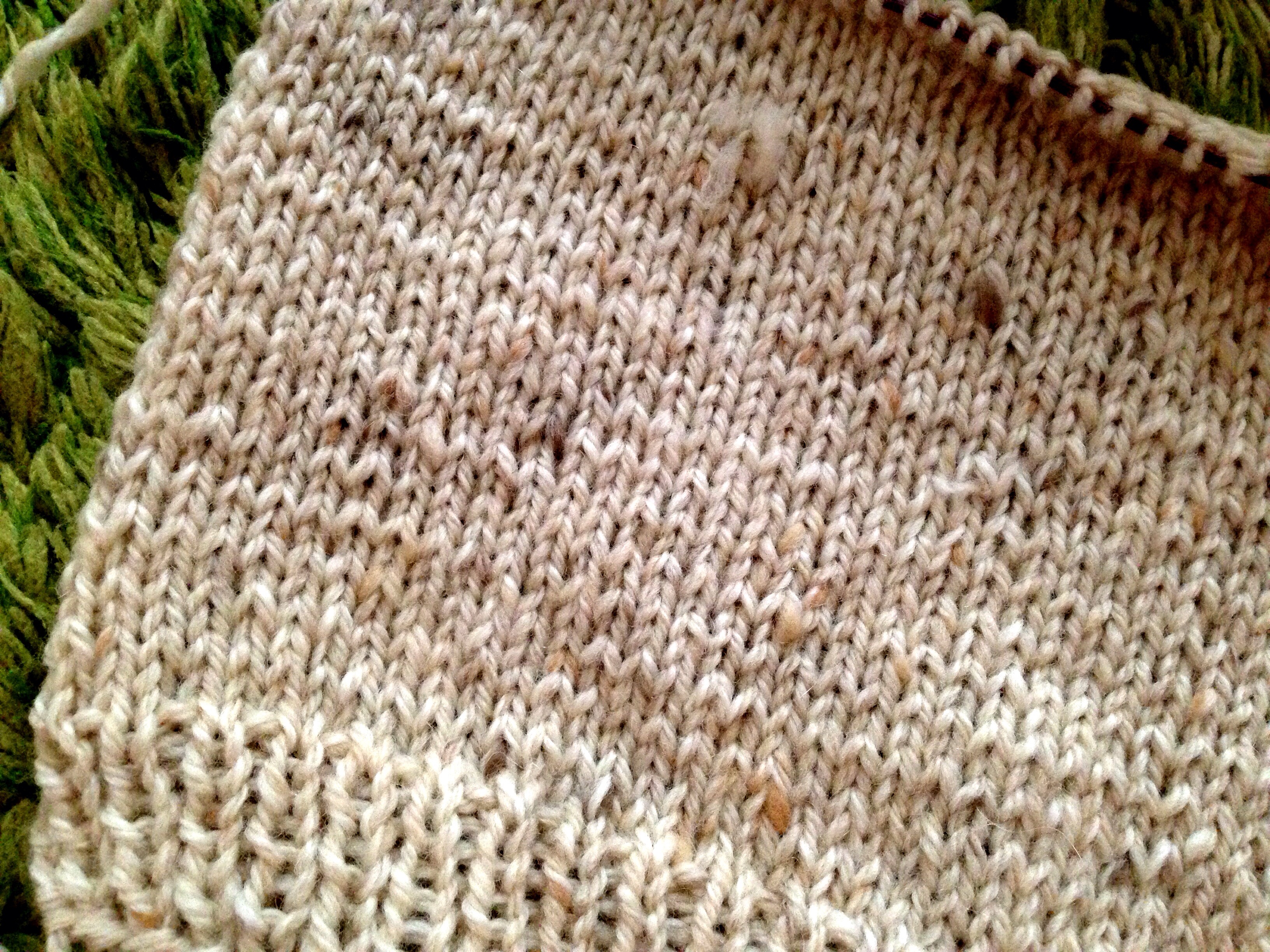 時々ネップとは違うコブのような箇所が出てきてそこだけ編み目が盛り上がってしまいますが、大きめのネップがかわいくてメリヤス修行でも楽しく編めています。。。。