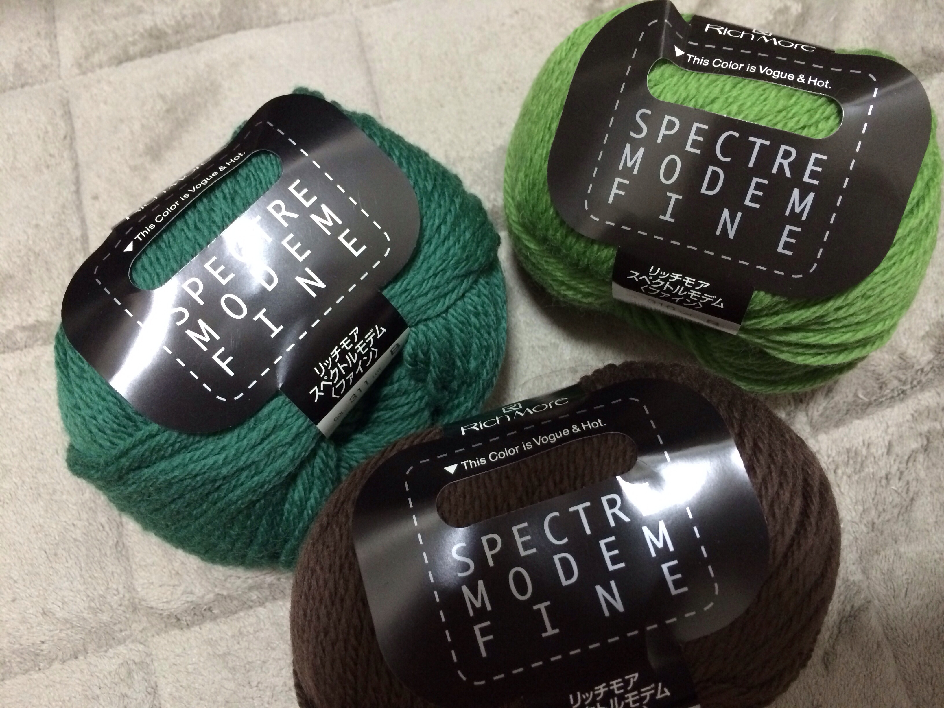 指定糸のリッチモア スペクトリルモデム<ファイン>で編んでいます。