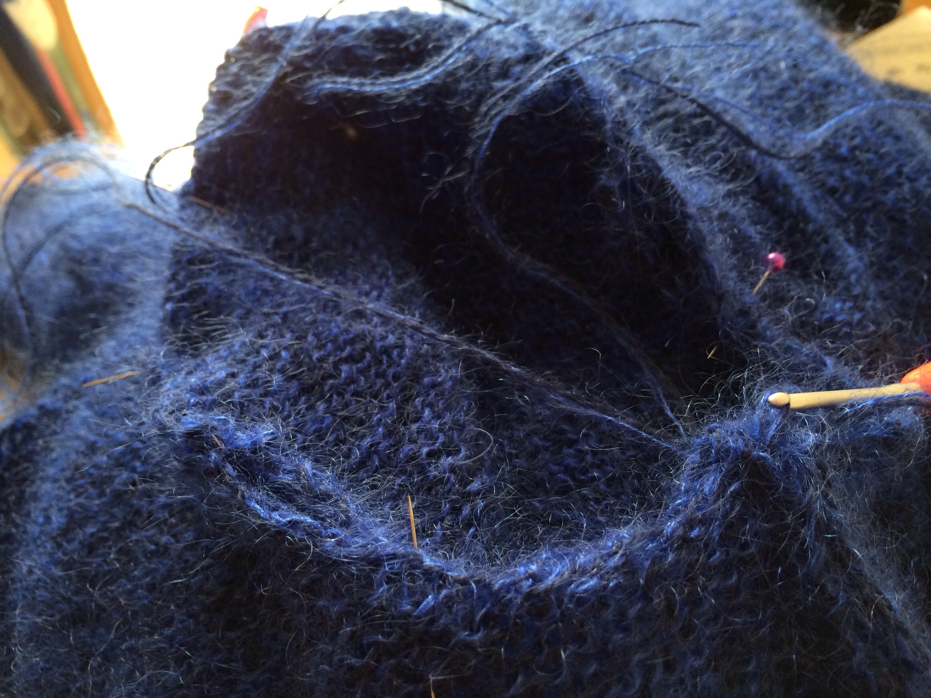 好き好んで一旦もつれると解くのが厄介な毛足の長いモヘアと極細の糸を引き合わす必要はなかったかもしれませんが、