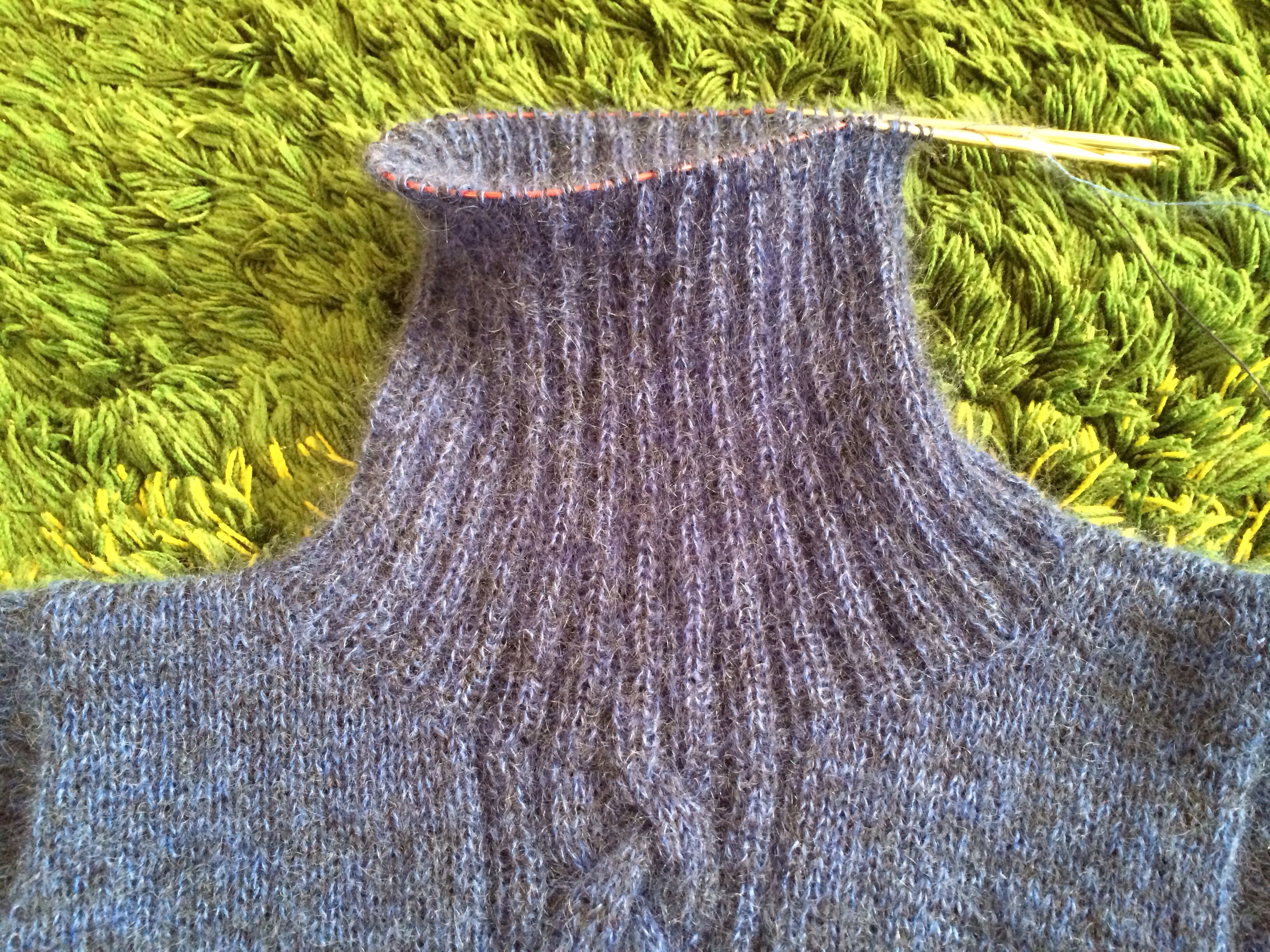 予定どうり、シルクローザで編むオフタートルのプルオーバーでございます♫