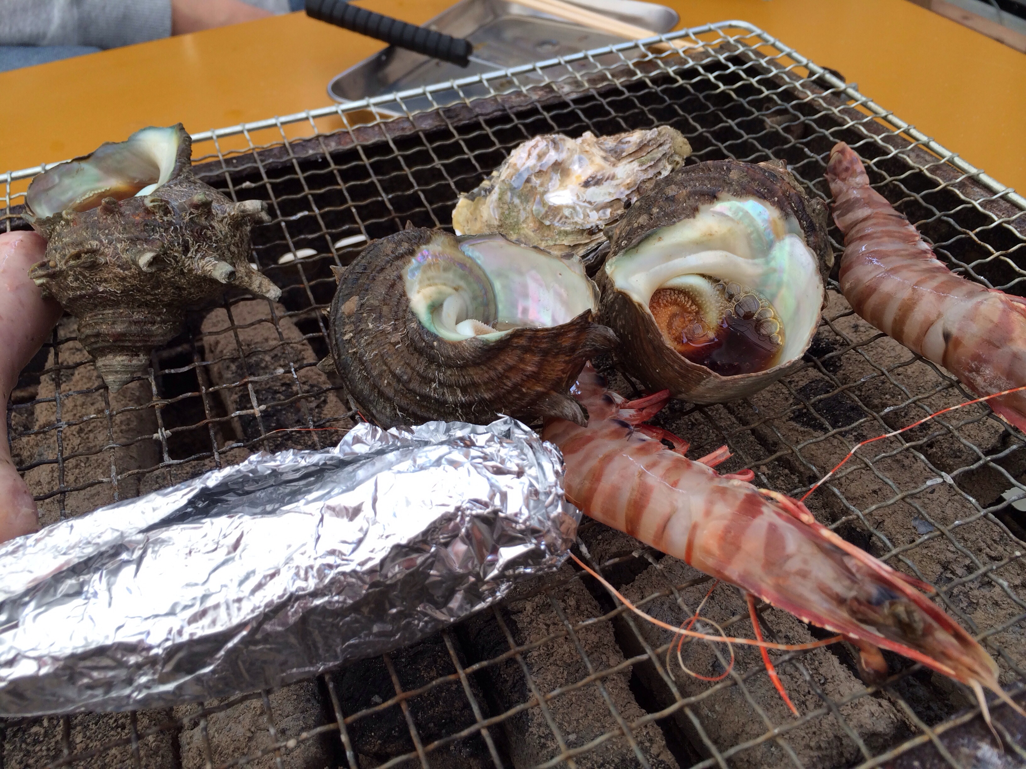 牡蠣だけではなく、サザエや海老など色んな海の幸が焼いて食べれます^_^。