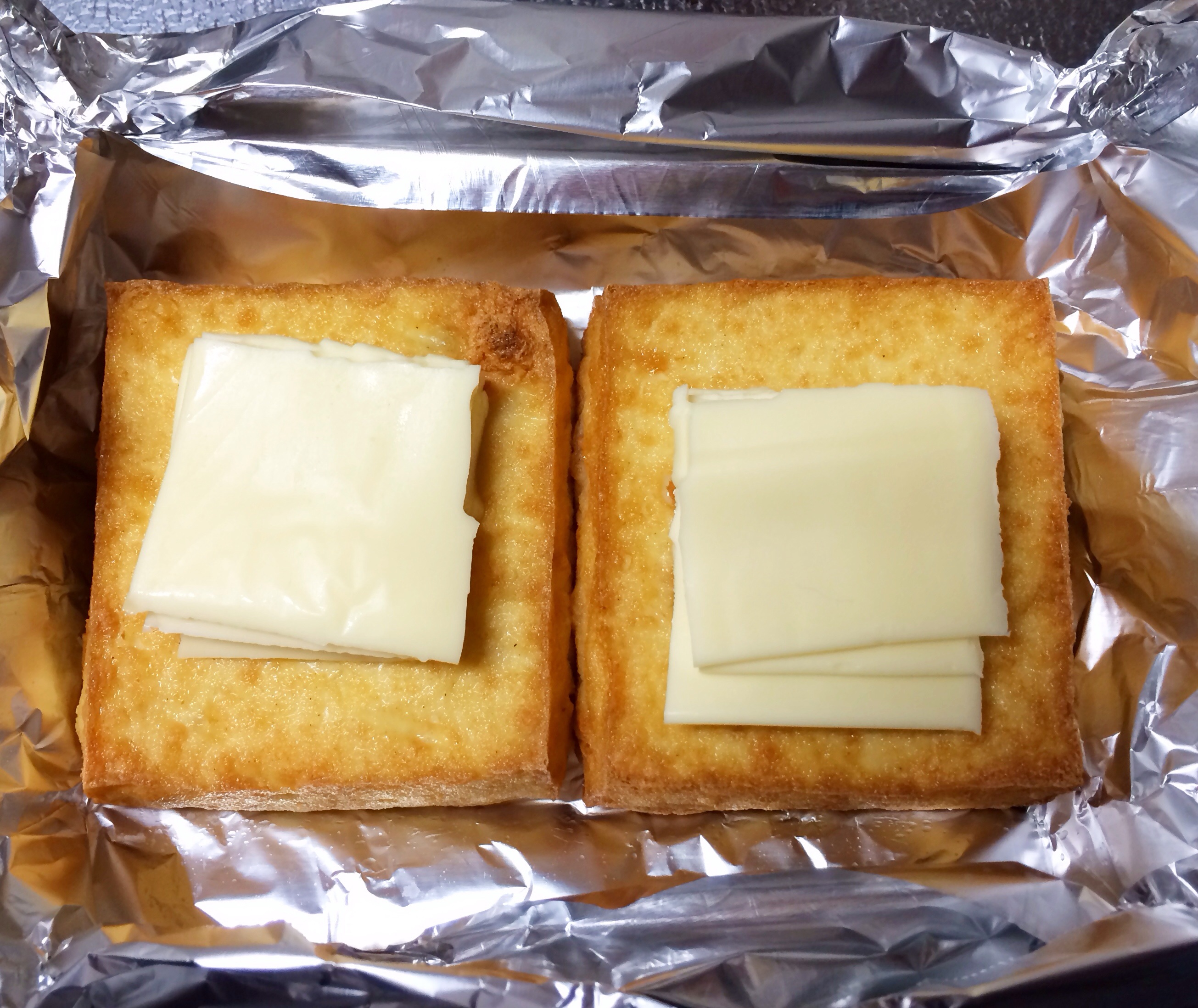 とろけるタイプでないスライスチーズ(<とろけるタイプ>は厚揚げにしみこんでしまうので味がしつこくなってしまいます。)