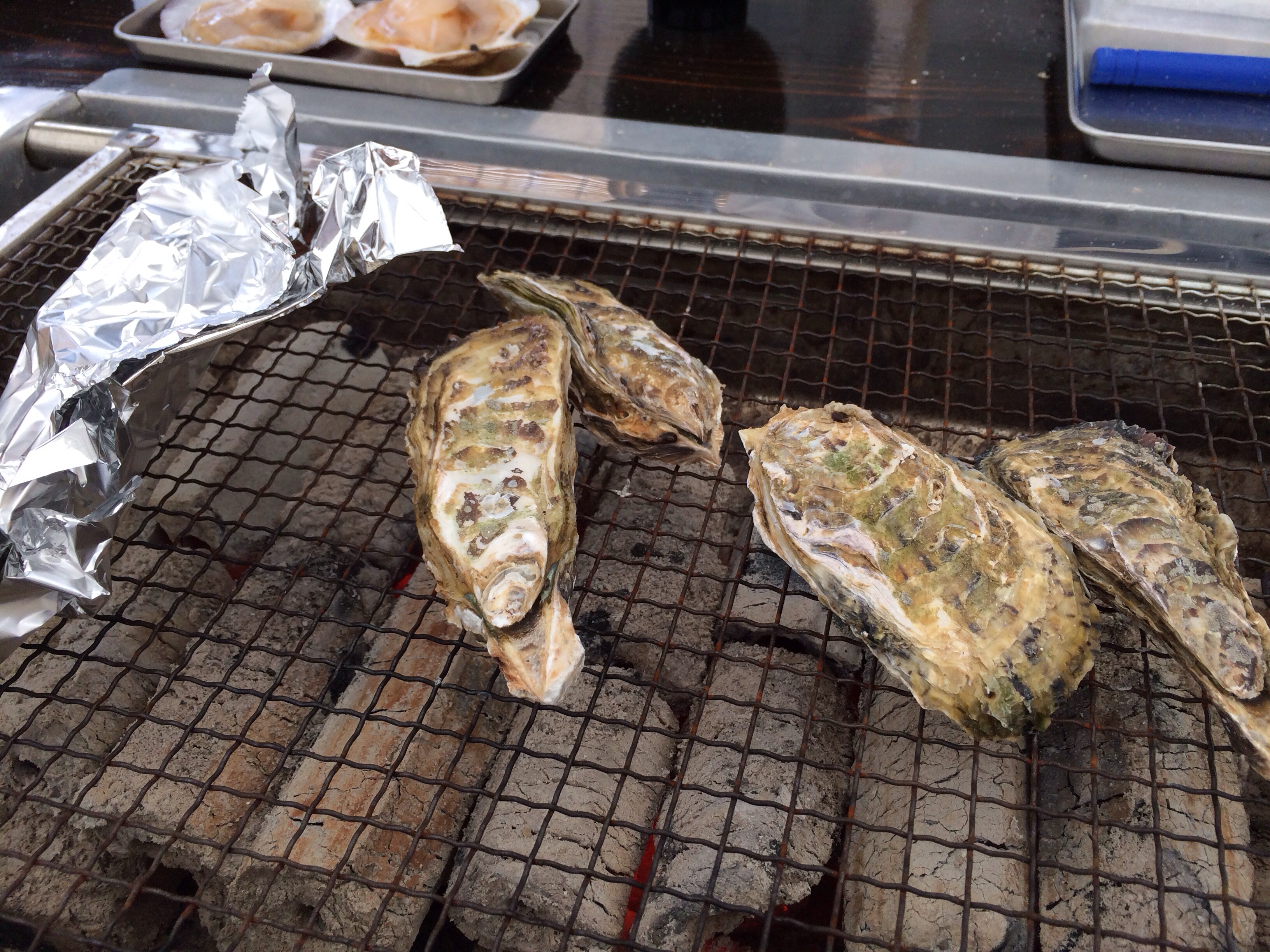 このところ、週末度に牡蠣小屋に行くのが習慣になりつつある我が家です。