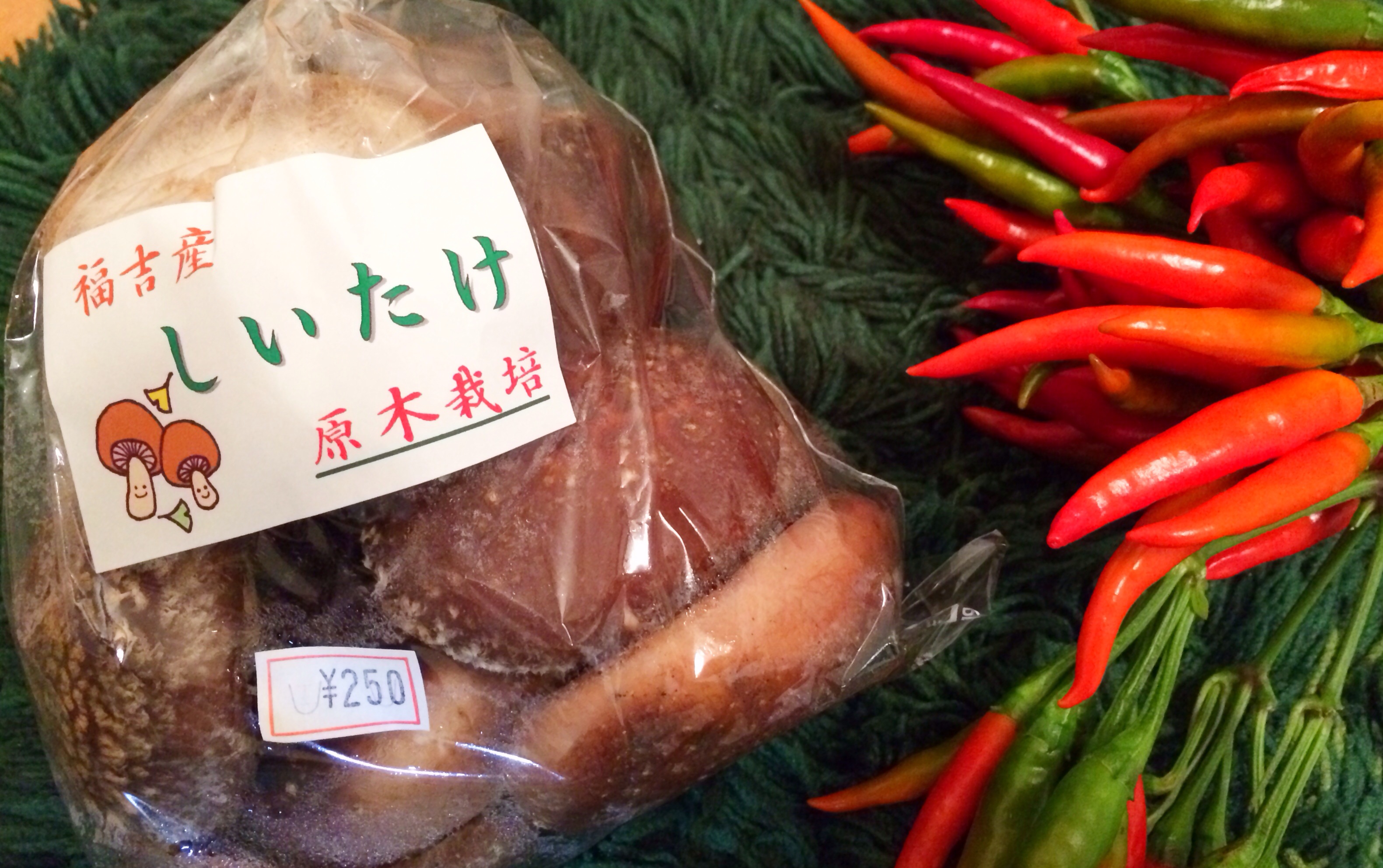 入浴場の直売コーナーで買った原木シイタケのソテーでワインをいただきました。