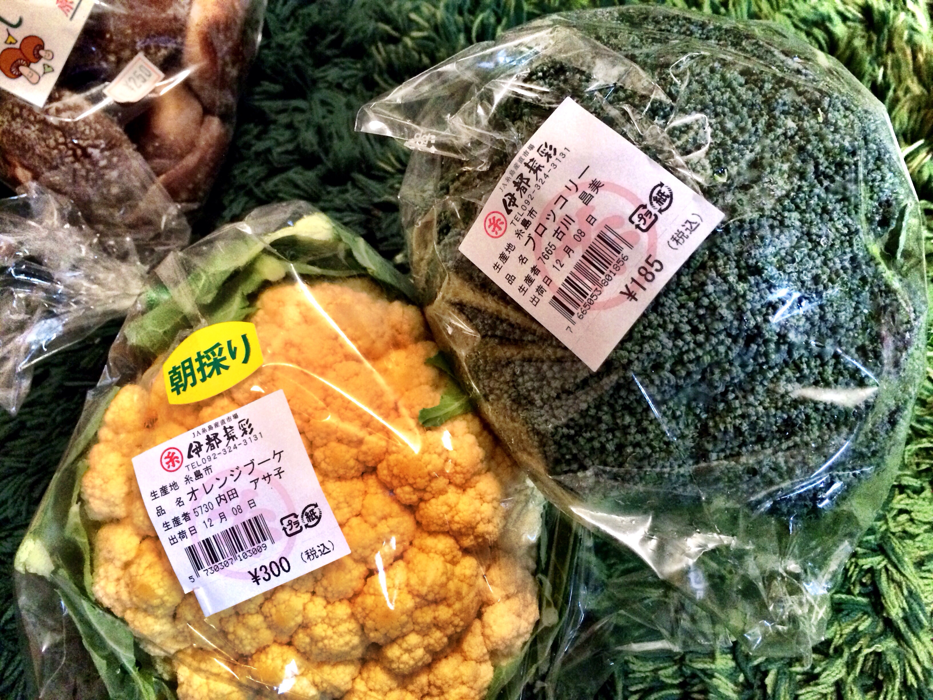 昨日は近くの直売所で手に入れた、朝取りのブロッコリーとカリフラワー(オレンジブーケ)とでホットサラダ、