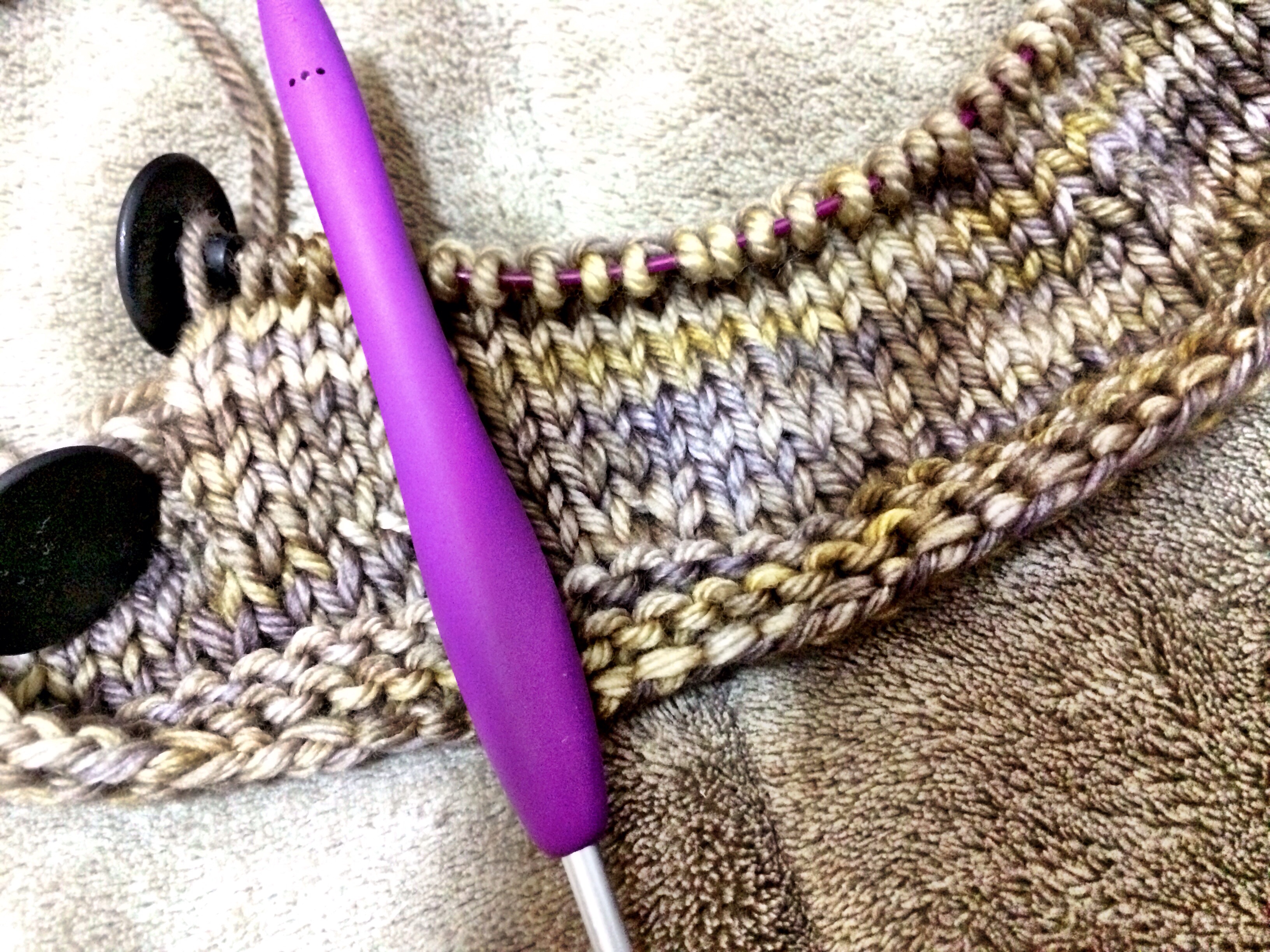編んでみるとベージュよりも紫色が際立った段染めがすっごくキレイですよ~~~!。