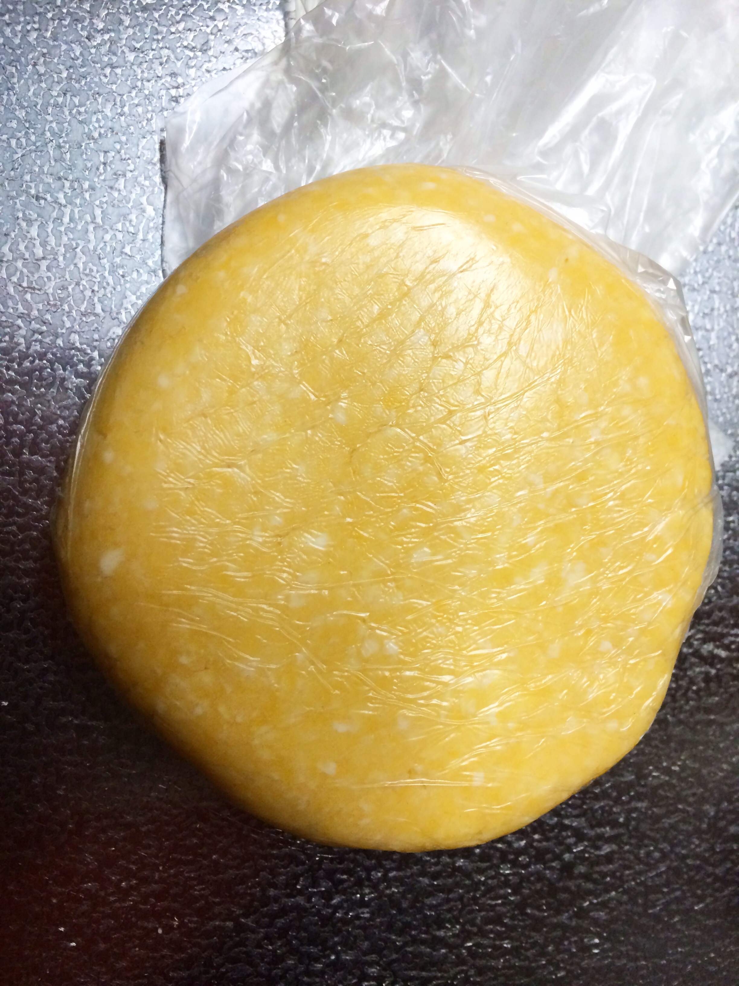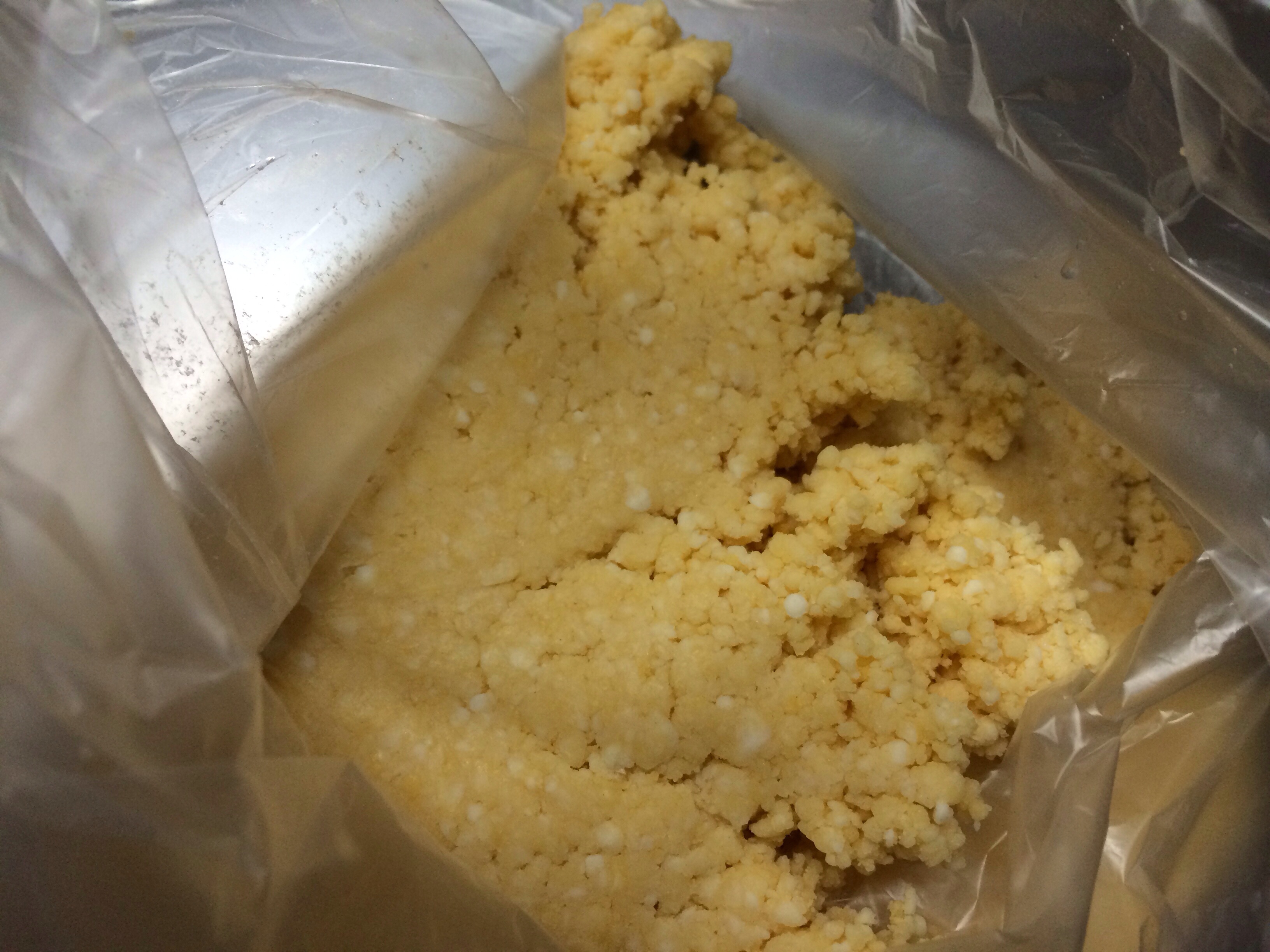 フードプロセッサーである程度ダマになってきたら、ビニール袋に移して袋の上から、押し固めては折っての繰り返しでまとめました。