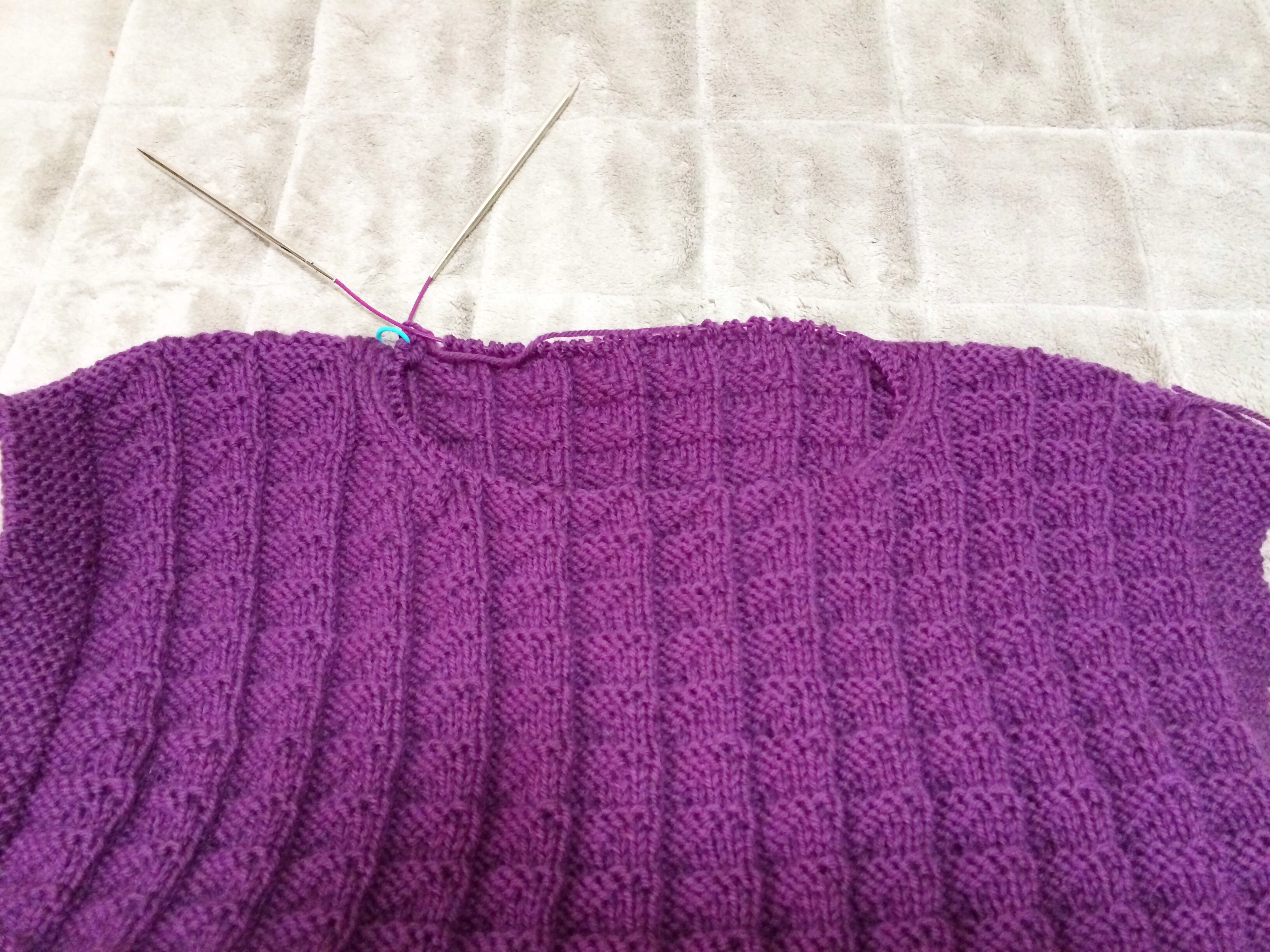 「編みものともだち」からのガンジーセーターは後ろヨークと衿が編めました(^o^)♫