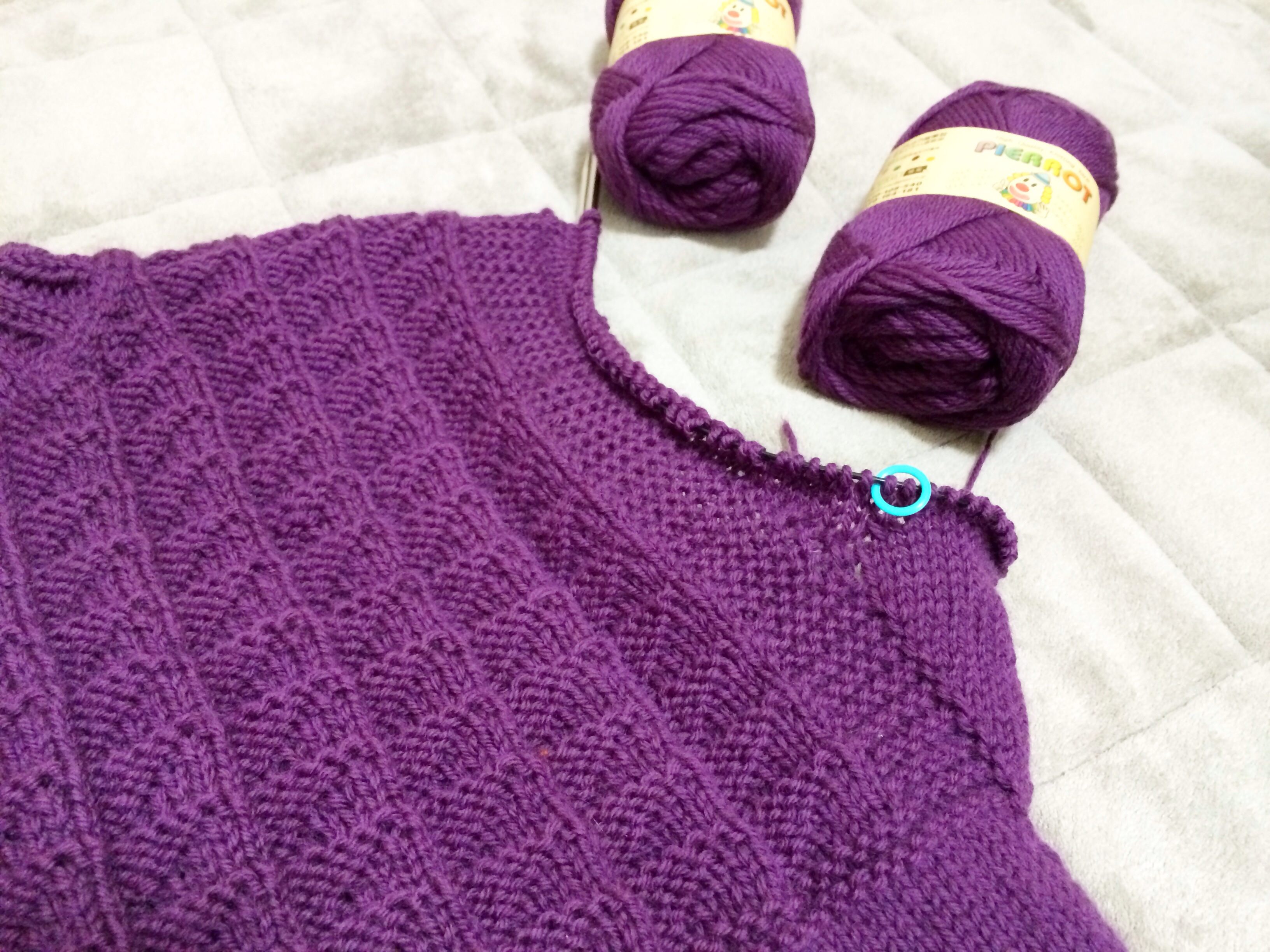 このままお袖も拾い目して一気編みの勢いを更に加速させようというところで、電池切れでお昼寝していたら、もう夕方♡