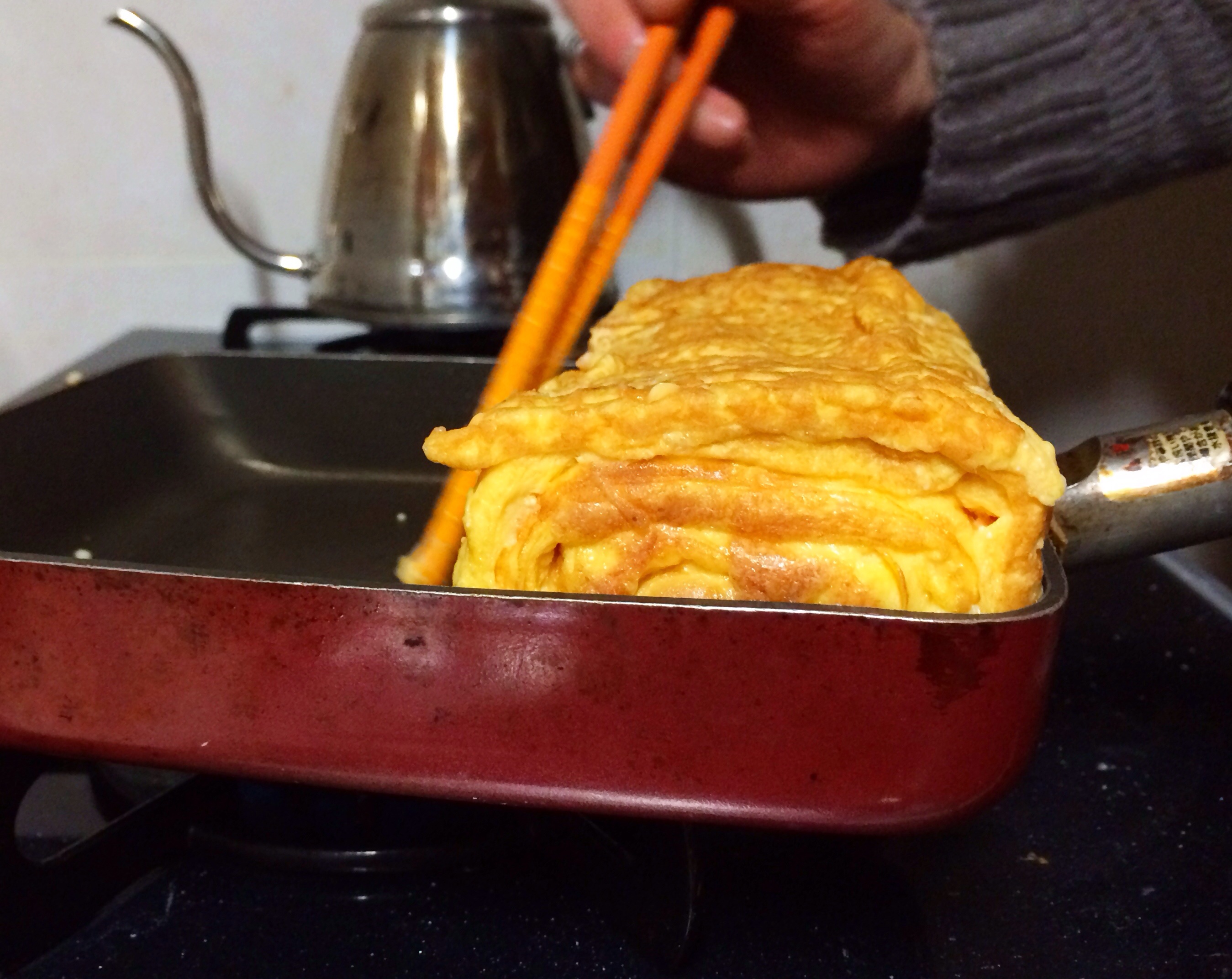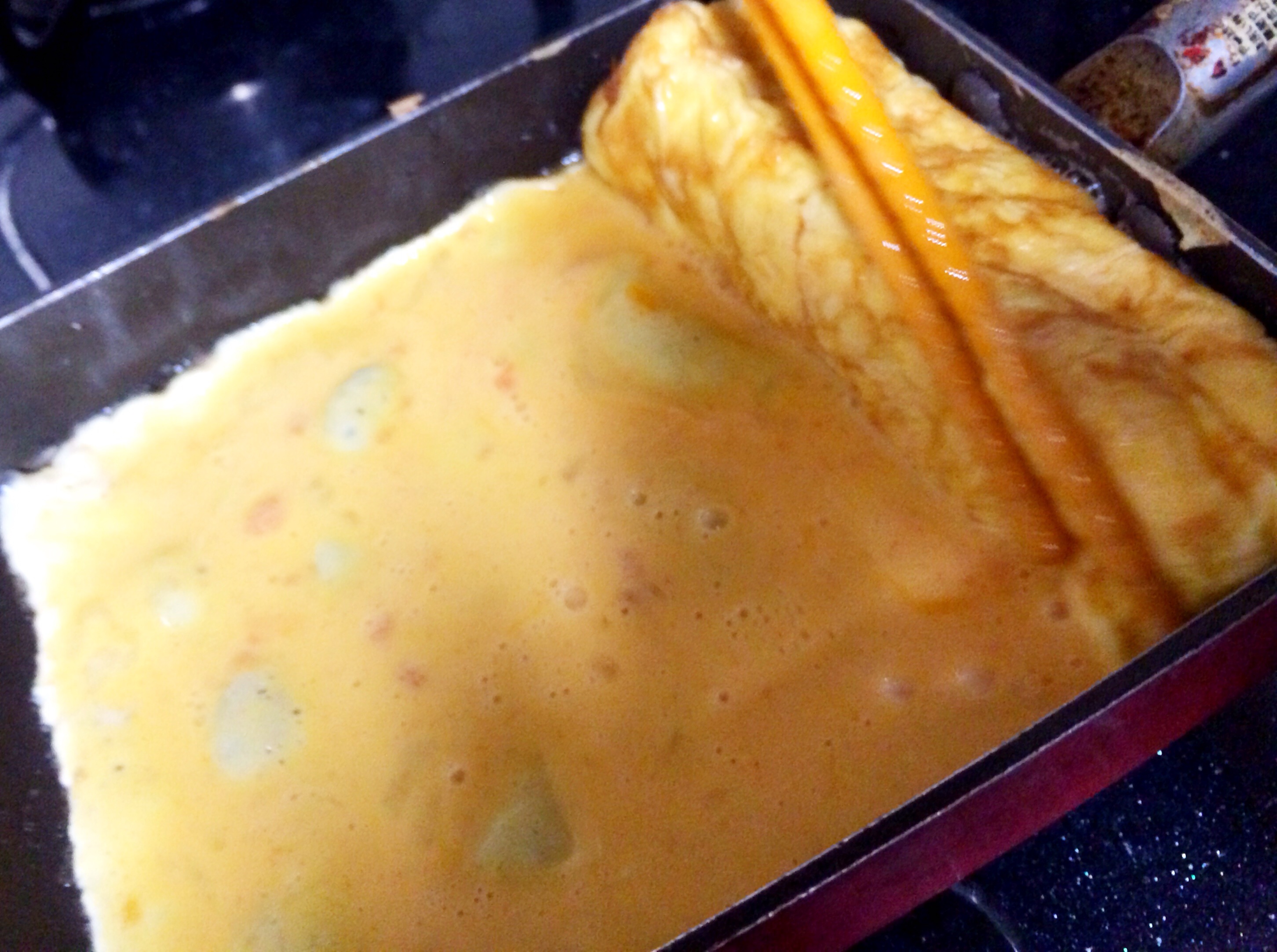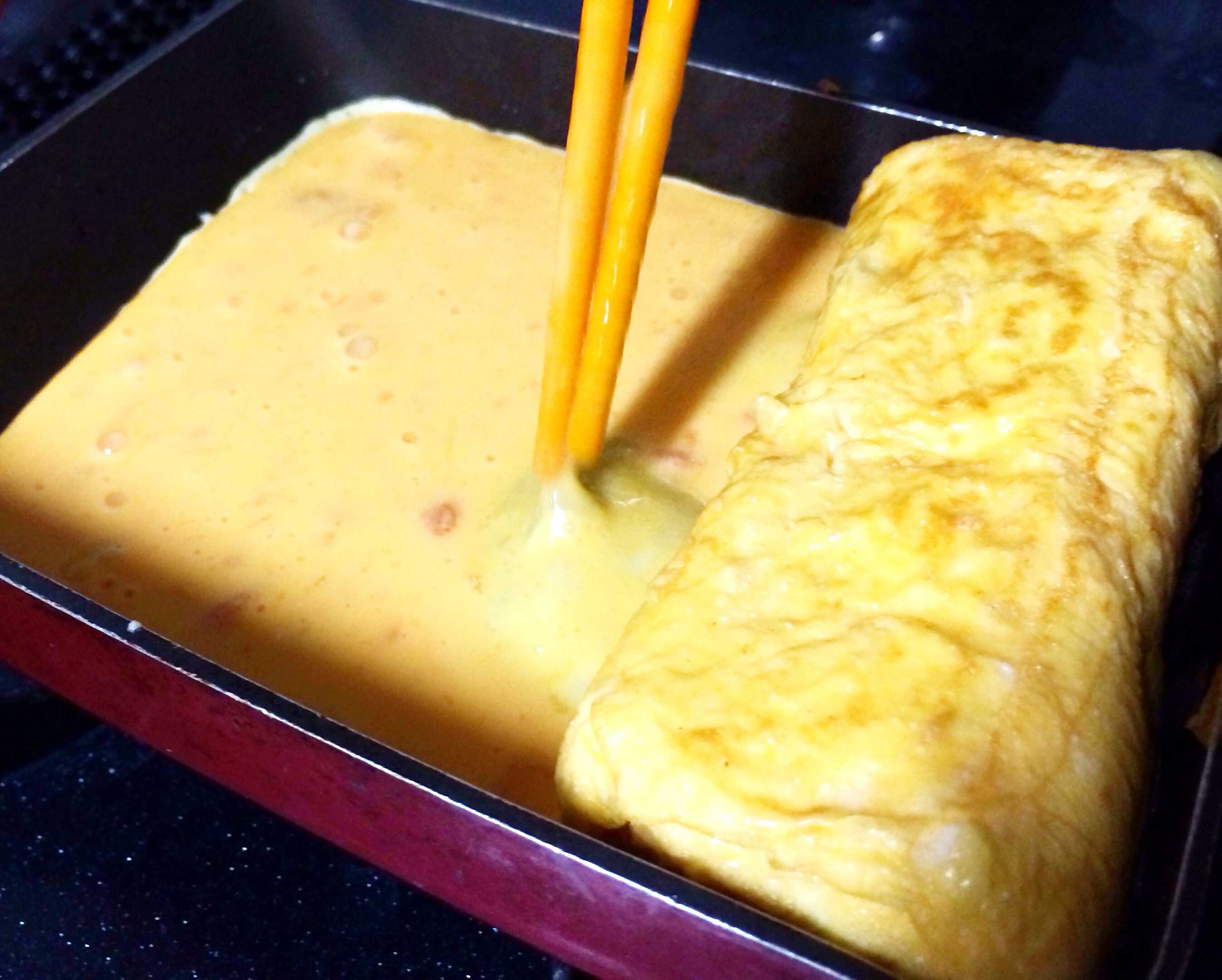③これから5〜7回に分けて卵液を焼いていきます。