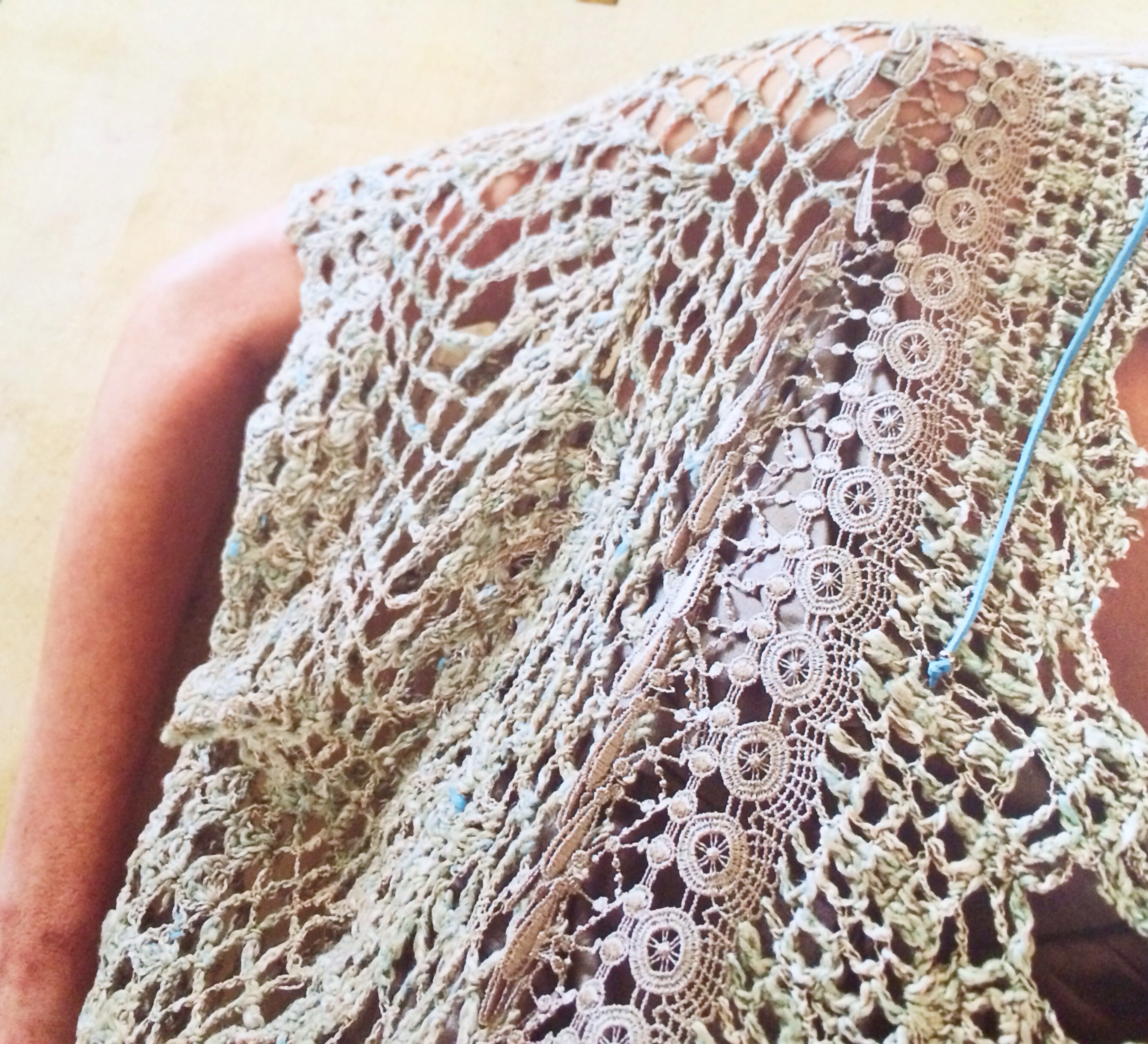 次に気になるのは、中村和代先生デザインのニットレースから編み出すポンチョのようなウエア。