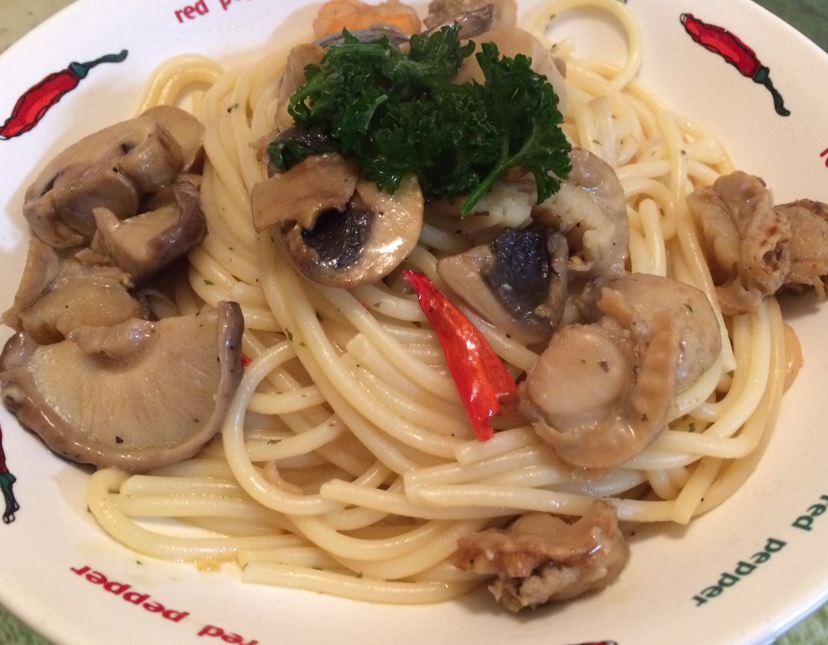 魚介の旨味でキノコもうまい(≧∇≦)<キノコのアヒージョ>