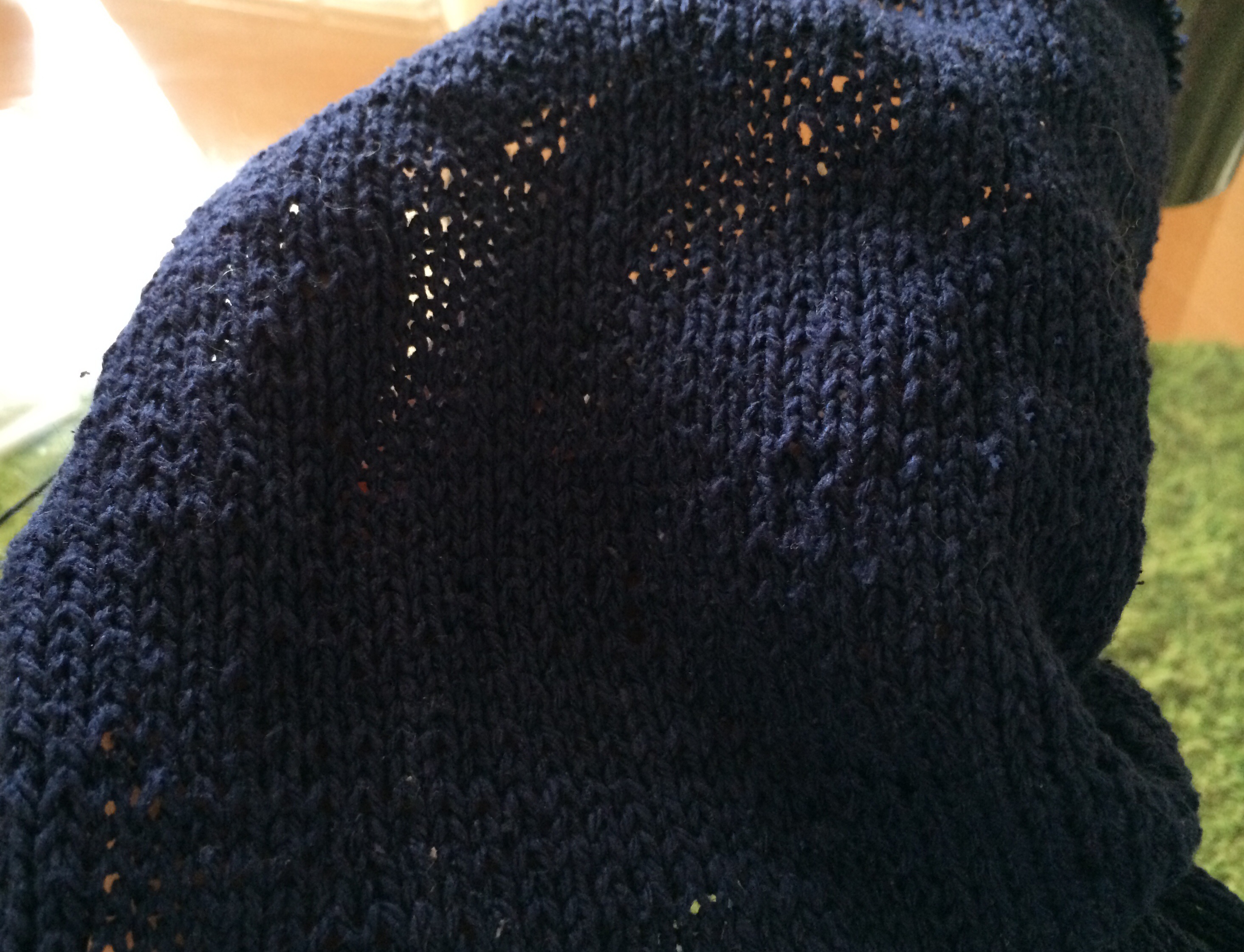 身ごろは10段編み足しましたがそれでも指定サイズより3cm短め。もたつくよりいいのでこのまま進めます。