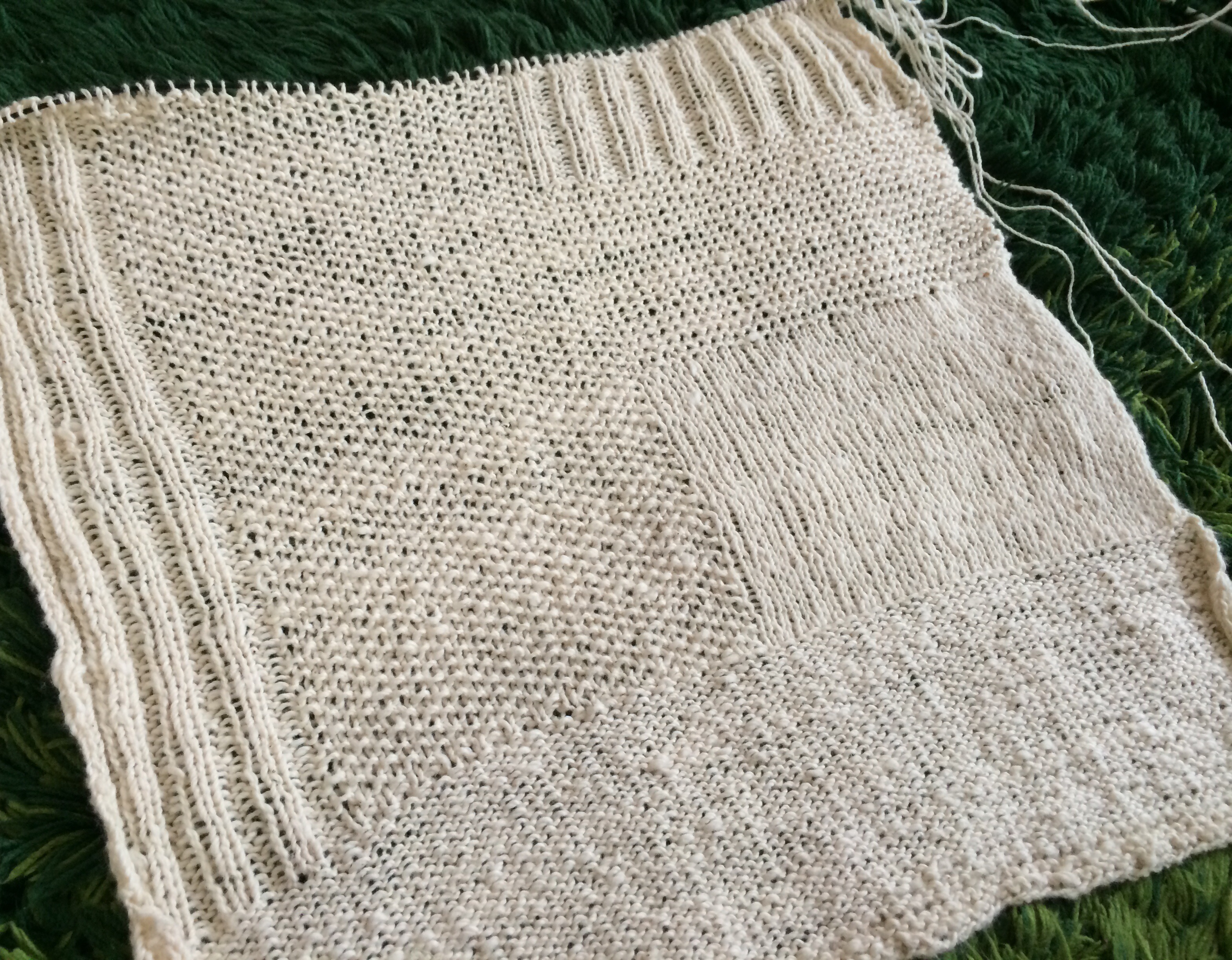 フワフワと柔らかい手紡ぎオーガニックコットンでタンクトップの後ろ身ごろが編めました♫