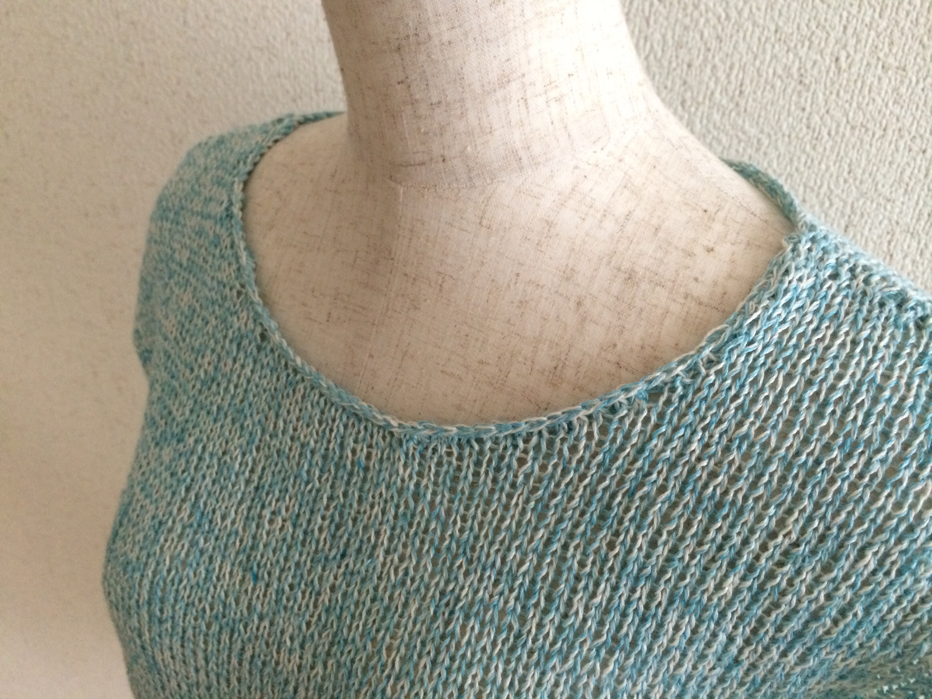 あっという間にほどいて、糸玉からまた元の肩下がりまで編み上げました♫