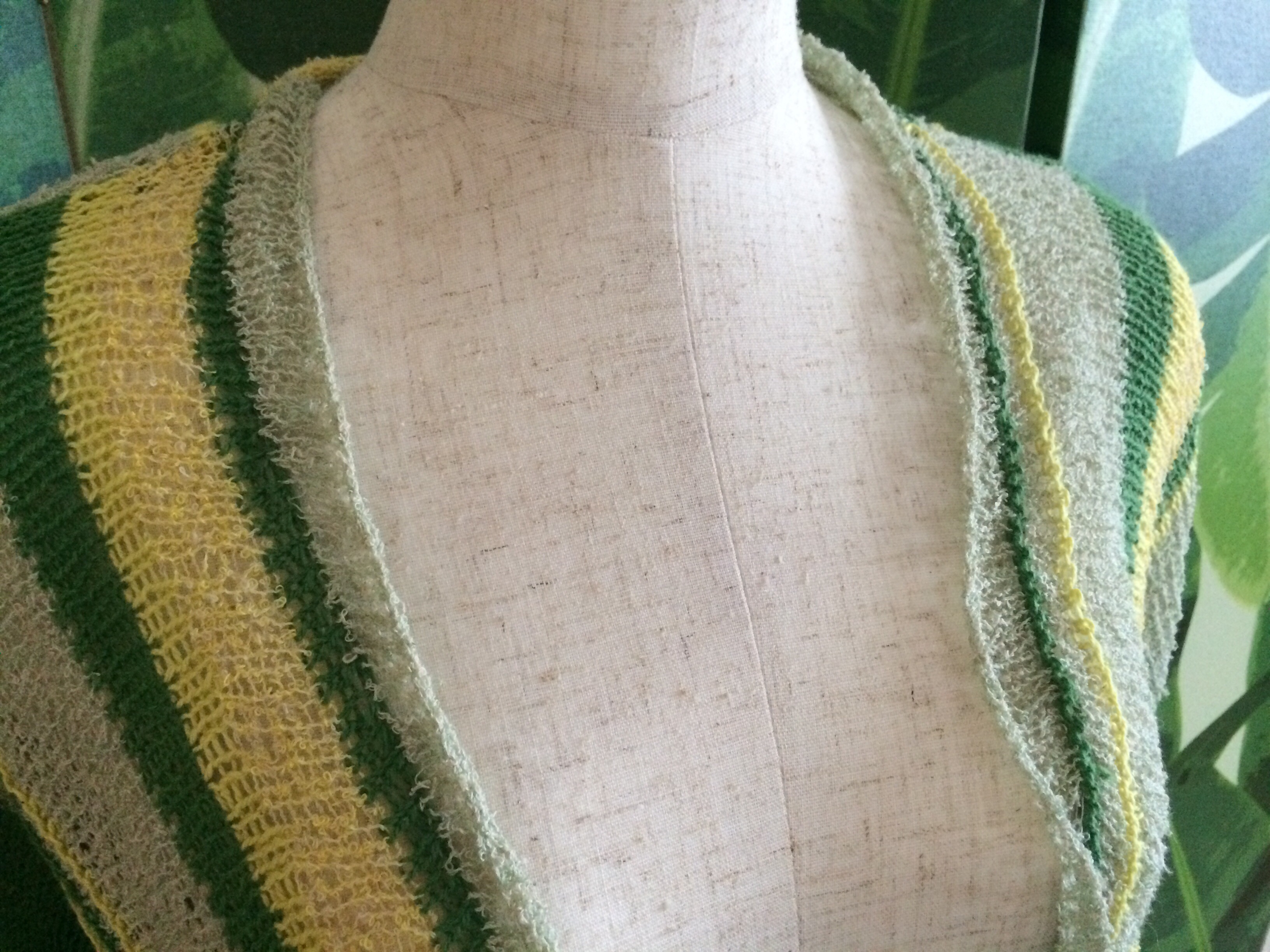 使用糸:ループ54 薄緑(02) 60g/2カセ、黄(03) 35g/1カセ紡毛綿52 緑(09) 30g/1カセ、黄緑(10) 15g/1カセ