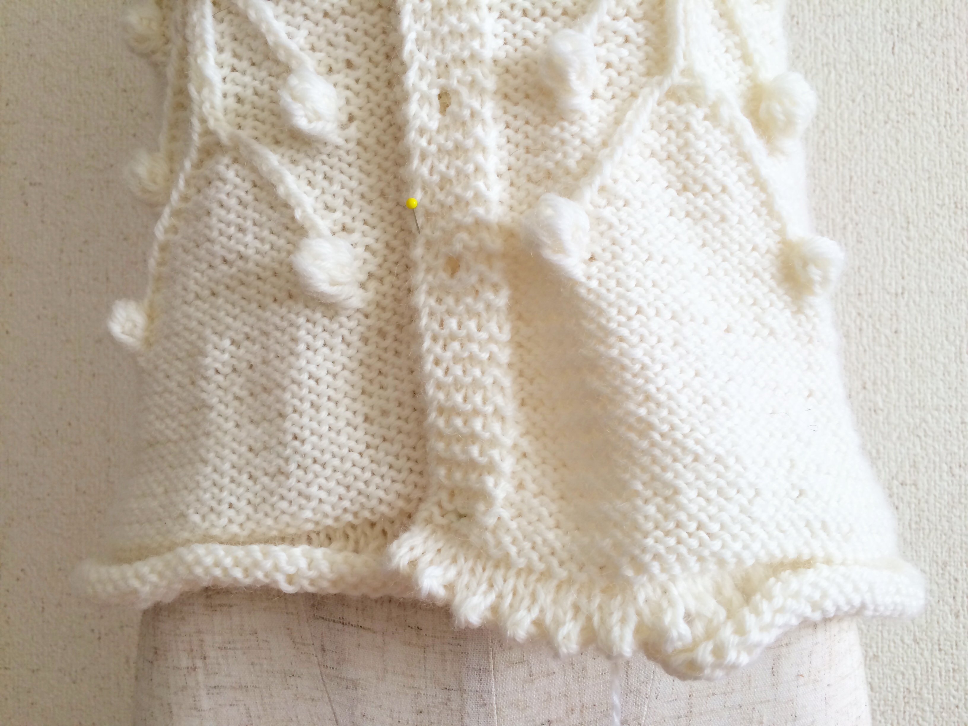 ★衿と裾のピコットのメリヤス部分を前と後共に1段多く編みました。