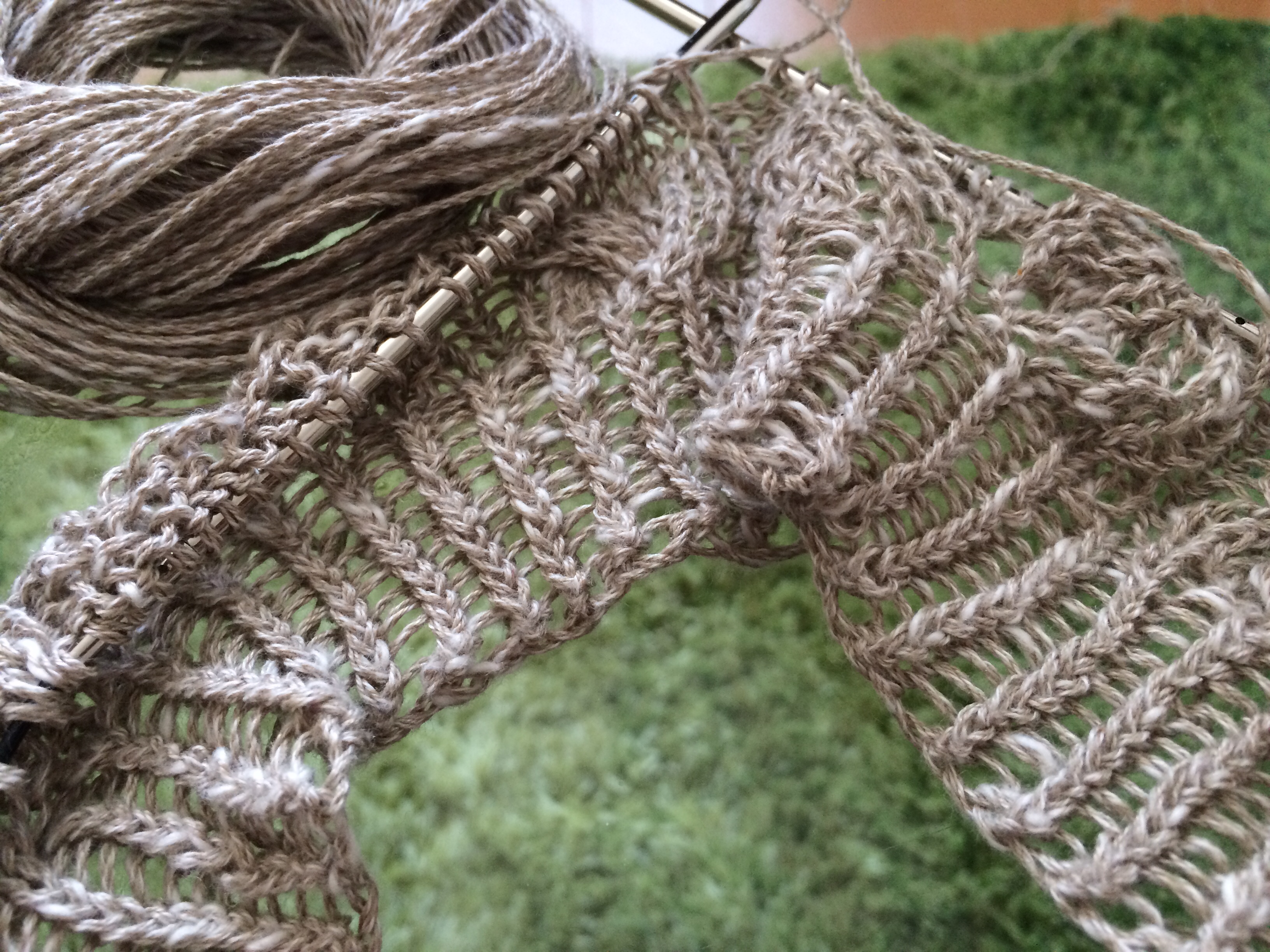 ベルギーリネンとコットンの糸でとても編みやすくて、メリヤス編みだけでも表情が出るのが好きです。