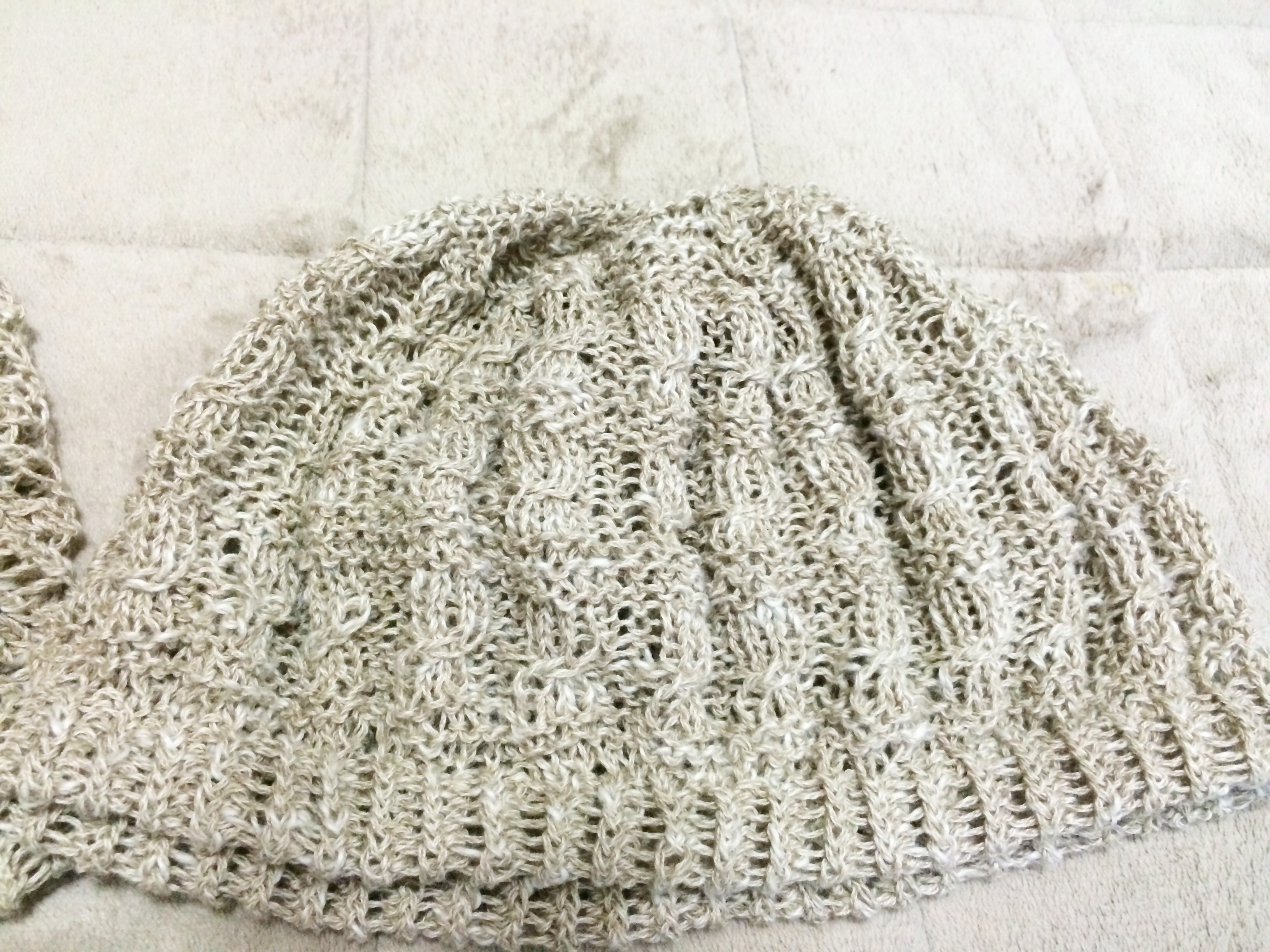 大好きな棒編みでチャカチャカと春夏のニット帽をベルギーリネンで編んでいます★