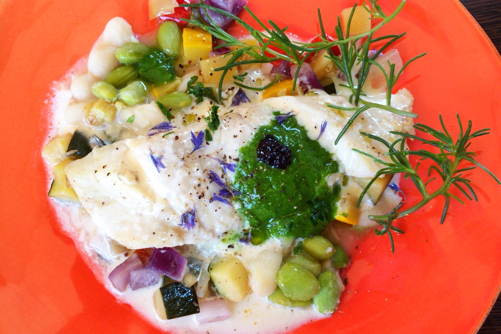 今回は鮮魚の白ワイン蒸しにたっぷりのお野菜とソースが添えられていて、フワフワの食感がたまらなく美味しかった!