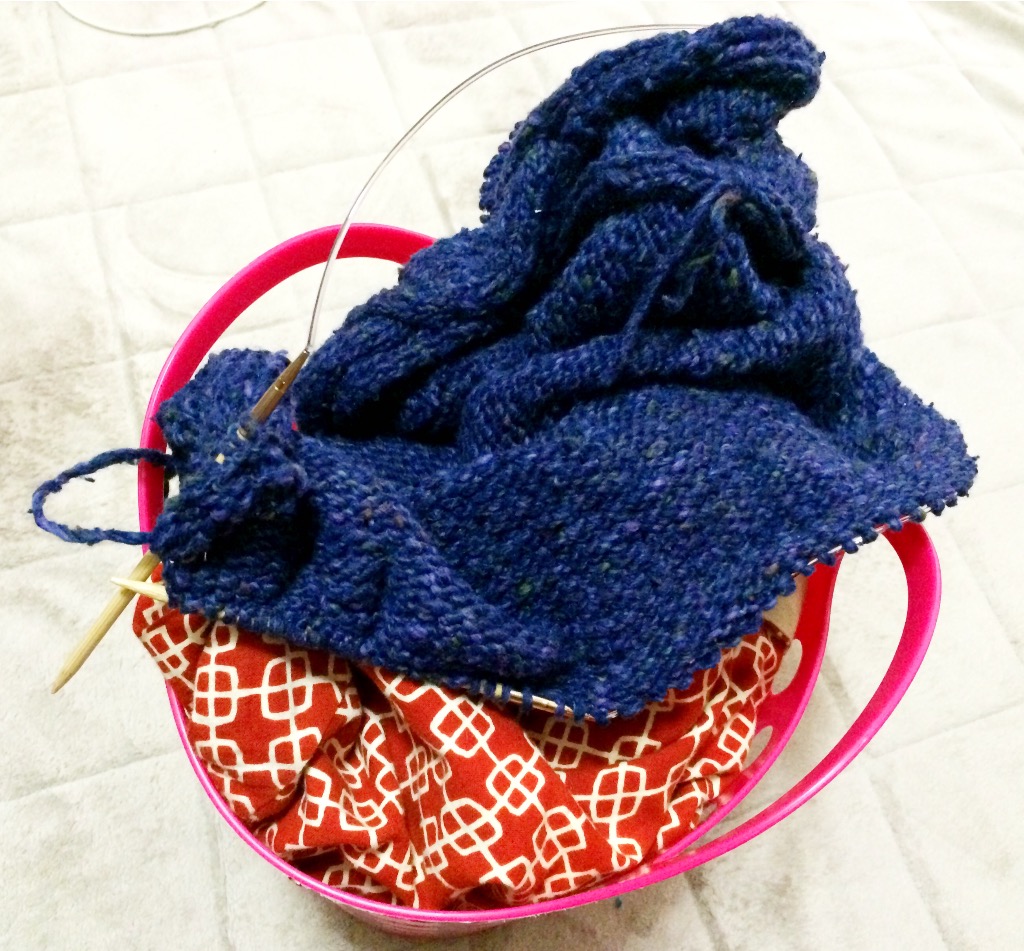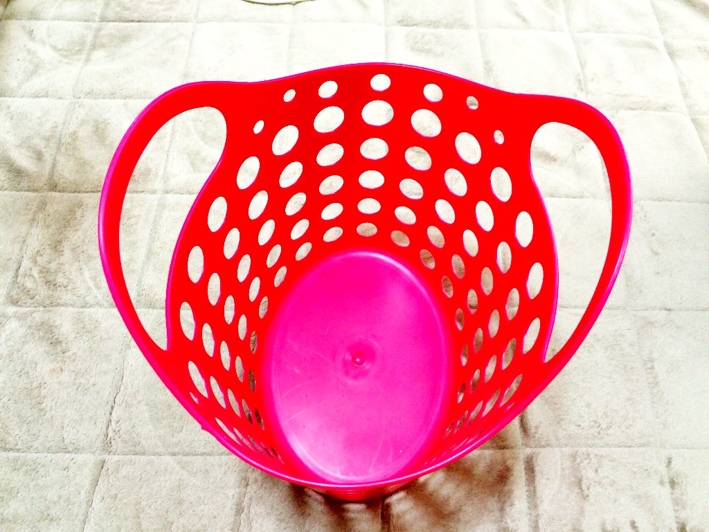 他に編みかけをまとめるアイテムは、セリアで買った柔らかいプラスチックのカゴに