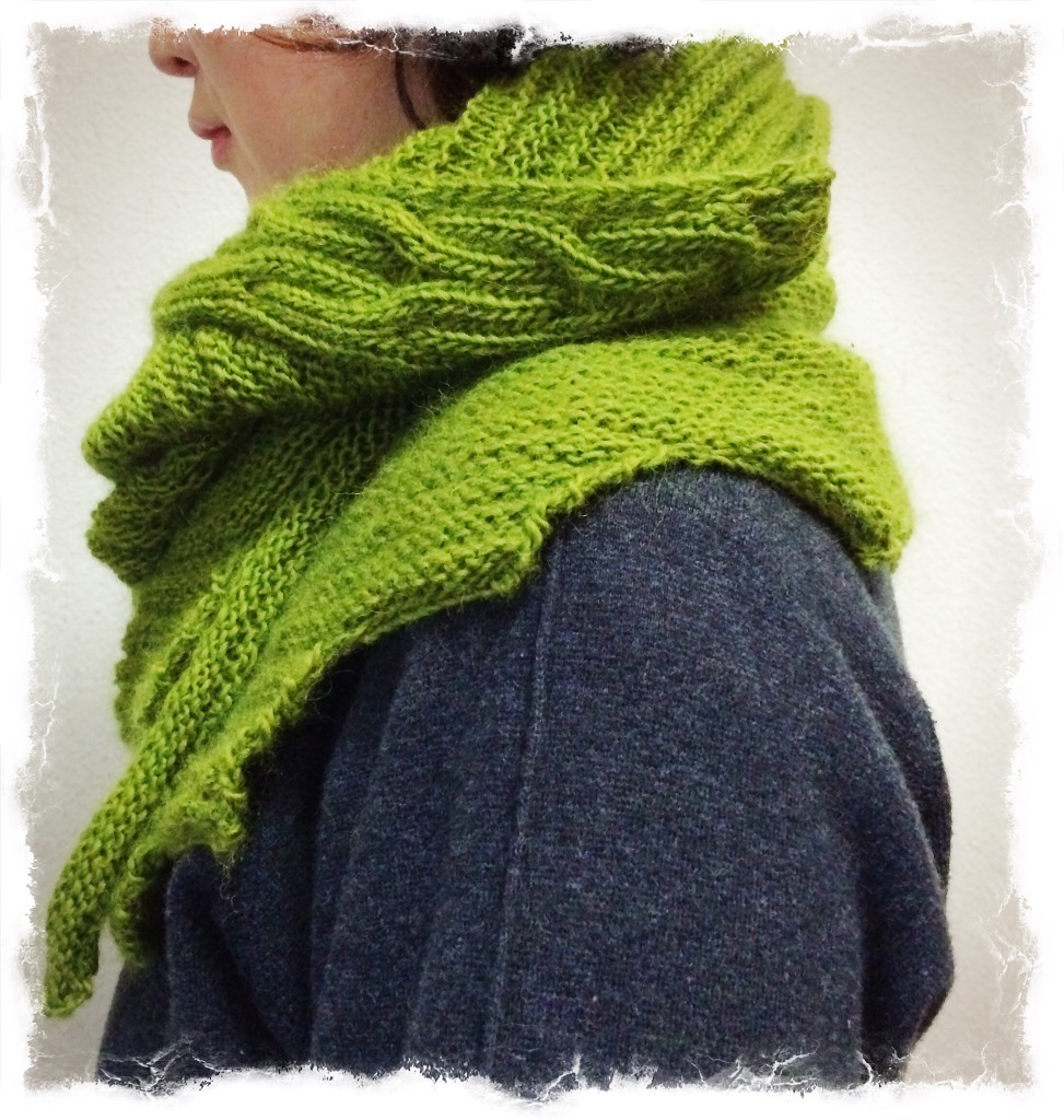 鮮やかな緑色のスプリングショール完成♫