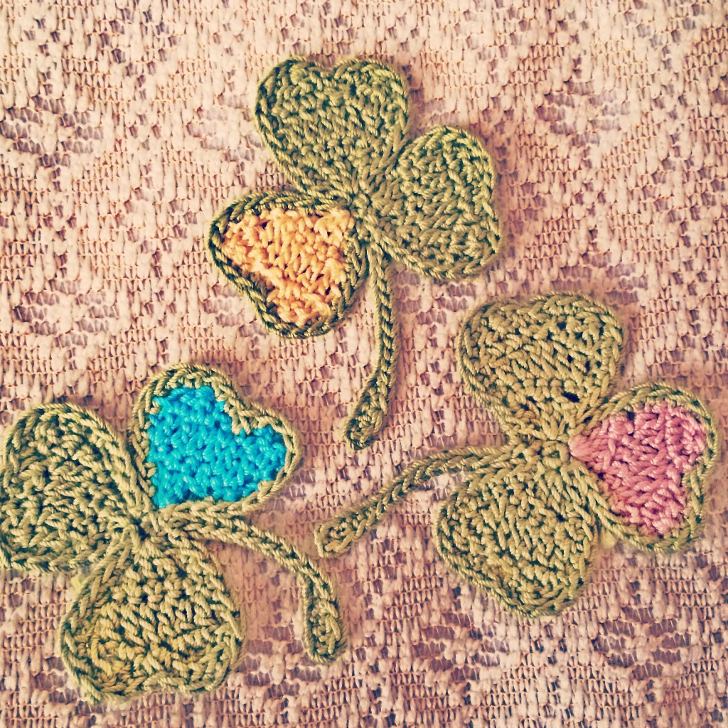 アイルランドの象徴、シャムロックを意識した三つ葉を彩りをつけて編んでみました❤︎小鳥も気に入っています♩