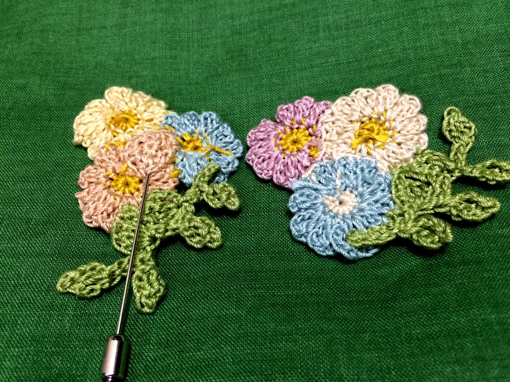 エミーグランデ<ハーブス>でかわいい小花のコサージュを編みました★