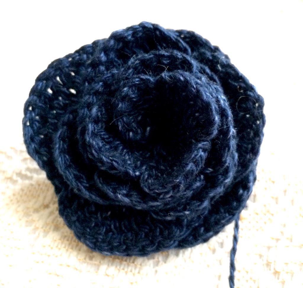 帽子1枚が2玉で編めて少し糸が残るので、かぎ針3号で巻き薔薇を編んでみました♫