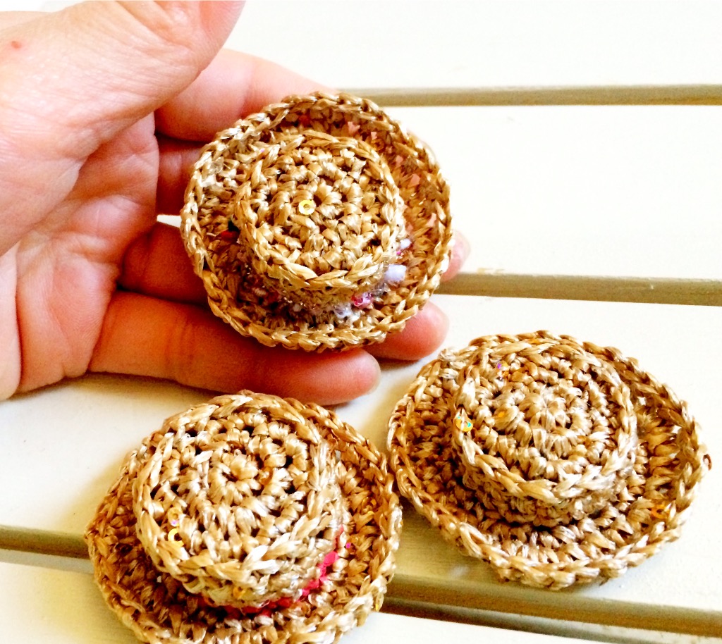 エコアンダリア スパンで小さな帽子ブローチを編みました。