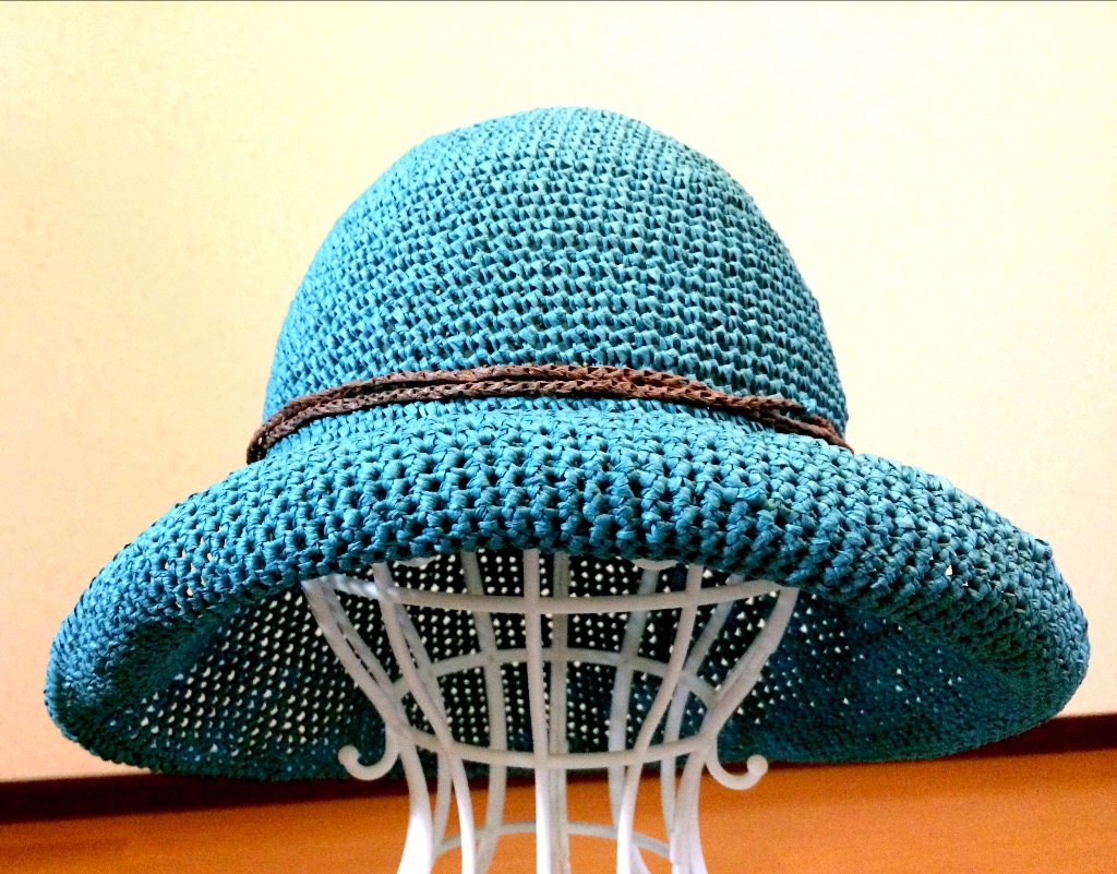 帽子編みの勢いは止まるところはなく、和紙糸のアミアンcol22テールグリーンで
