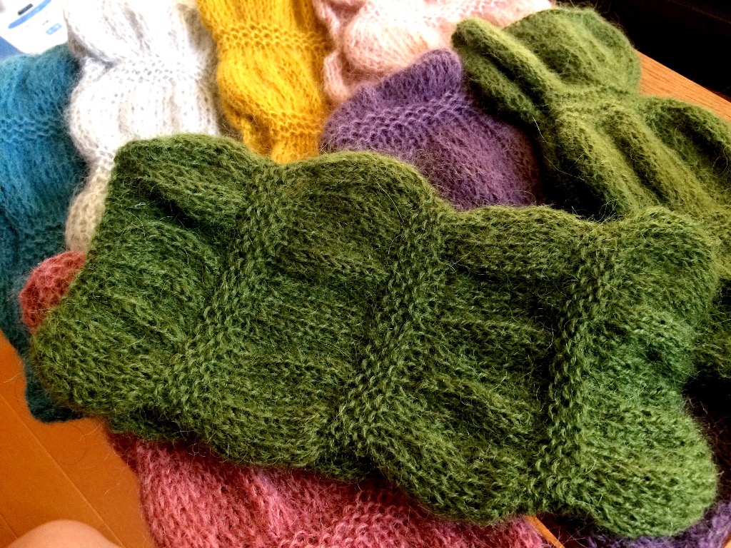 モヘアとアルパカの糸2本引き添えて編んだヘアターバン★柔らかくてつけ心地が良いです?