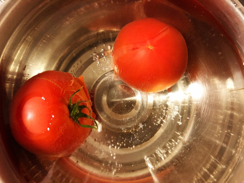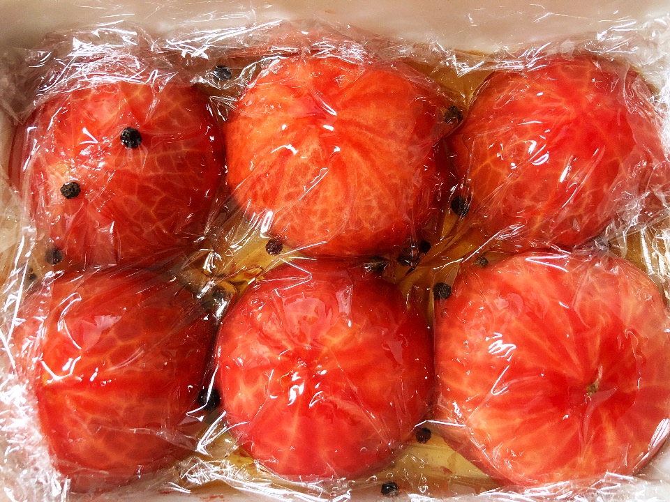 好みの甘酢をトマトが半分浸るまで注ぎ