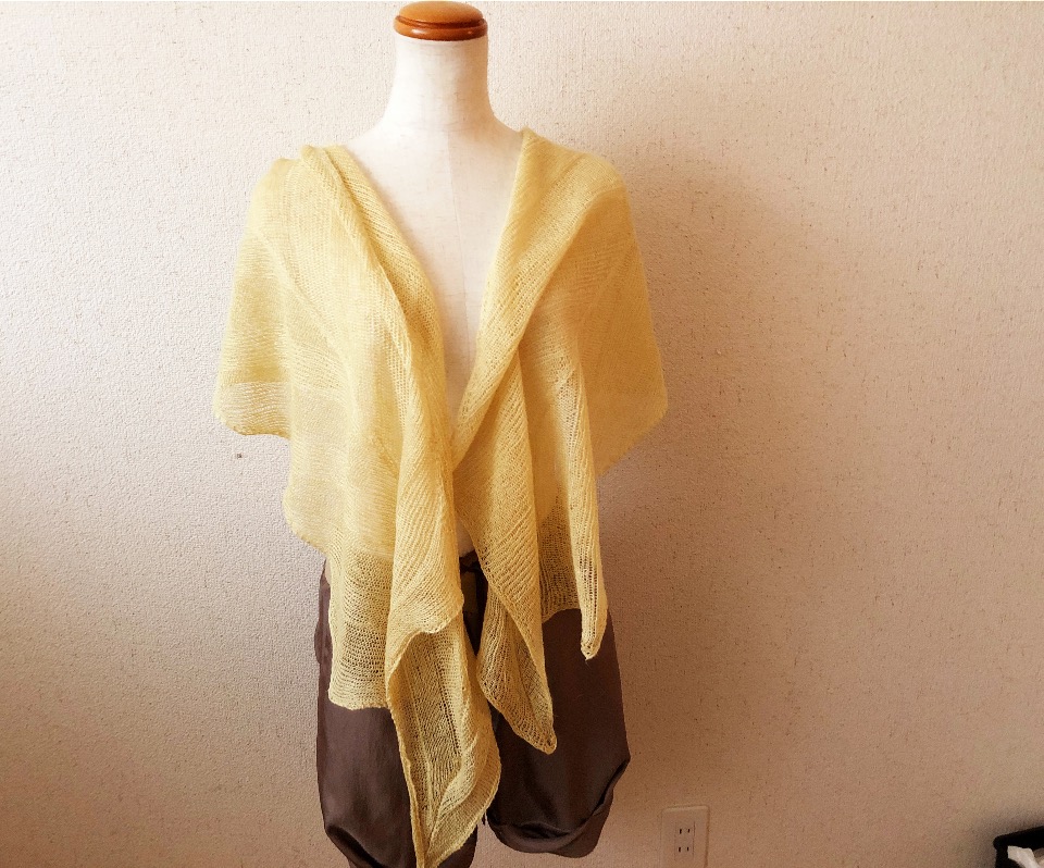 カモミール色のBanana Leaf Shawlが編み上がりました。